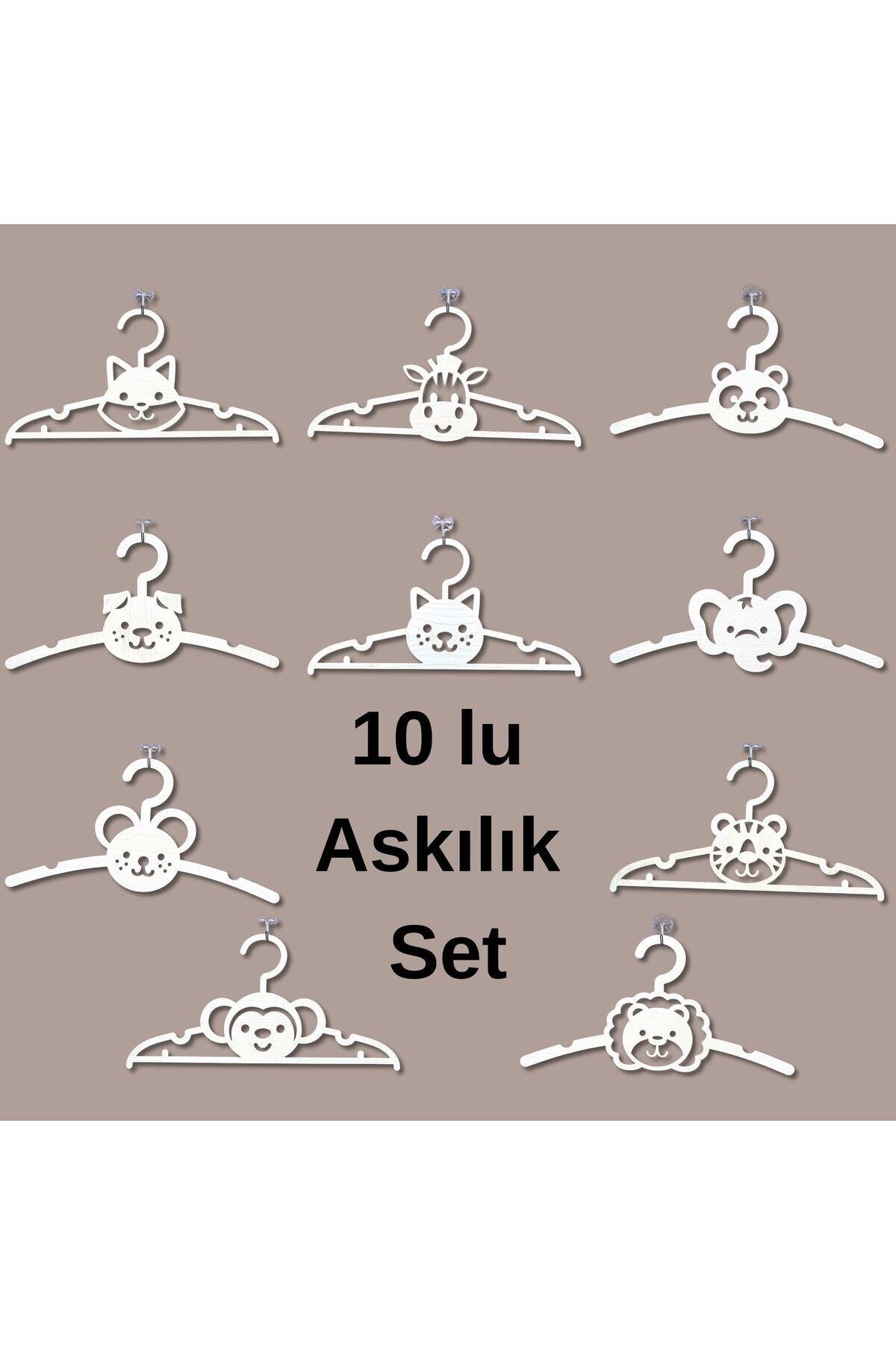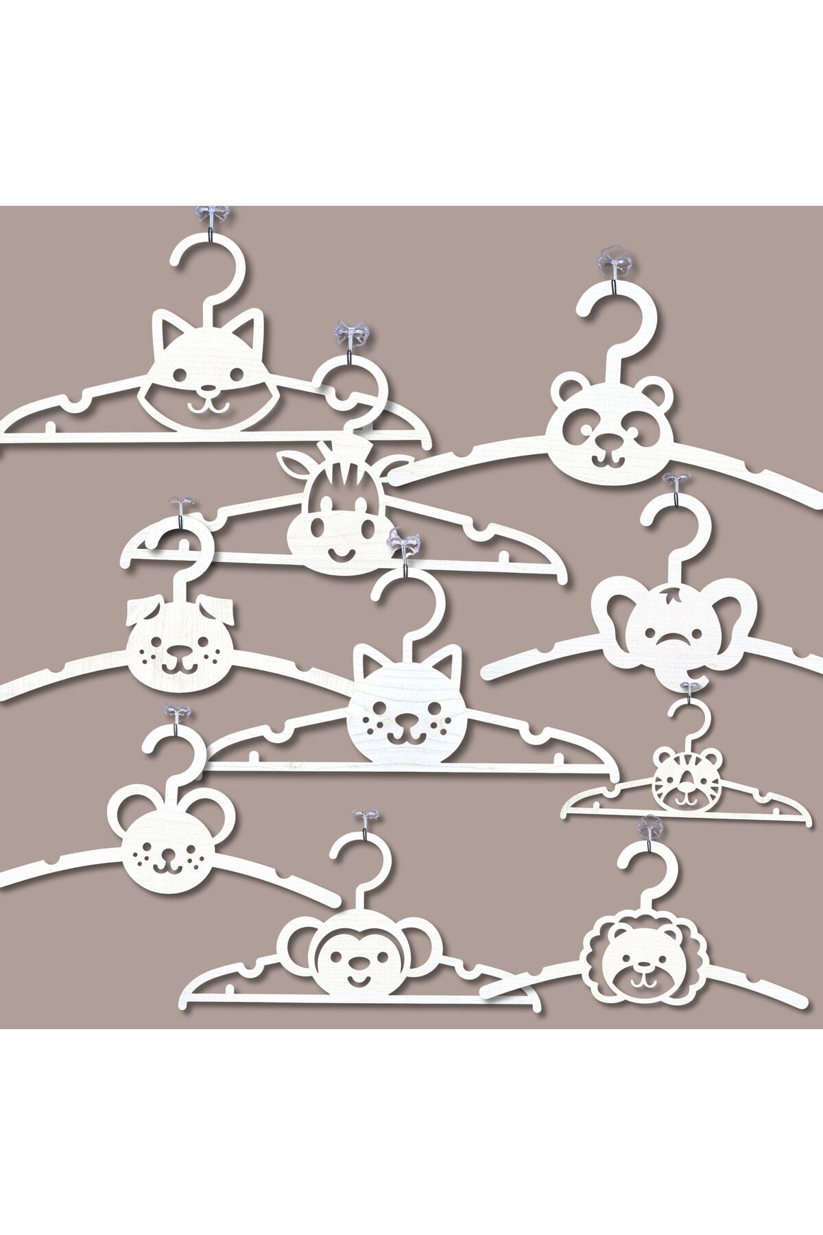 10'lu Hayvan Figürlü Ahşap Çocuk Askısı 3mm MDF, Akçaağaç Renk Eğlenceli & Dayanıklı