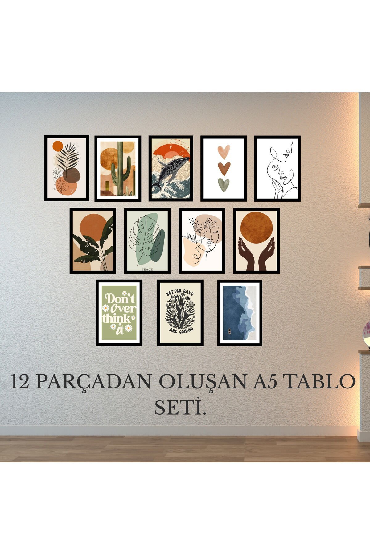 12’li A5 MDF Duvar Tablo Seti – Minimal Boho Modern Dekoratif Poster Seti