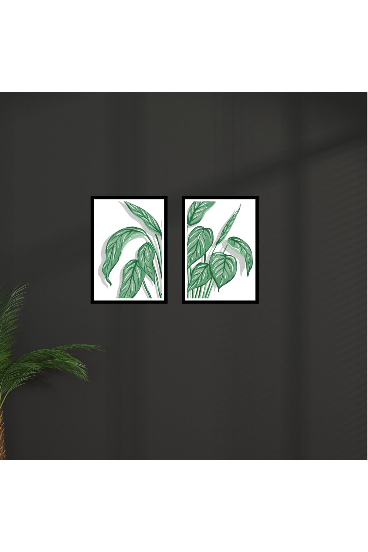 2 Parçalı A5 MDF Bitki Tablo Seti – Split Plant Design, Minimal Modern Duvar Dekoru - FASTDEKOR