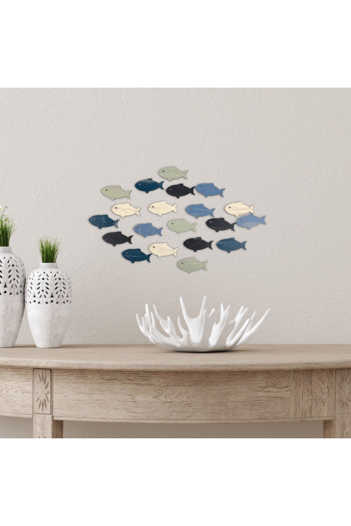 20 Parça Ahşap Balık Duvar Süsü Seti – Renkli Modern Deniz Temalı Dekoratif Aksesuar