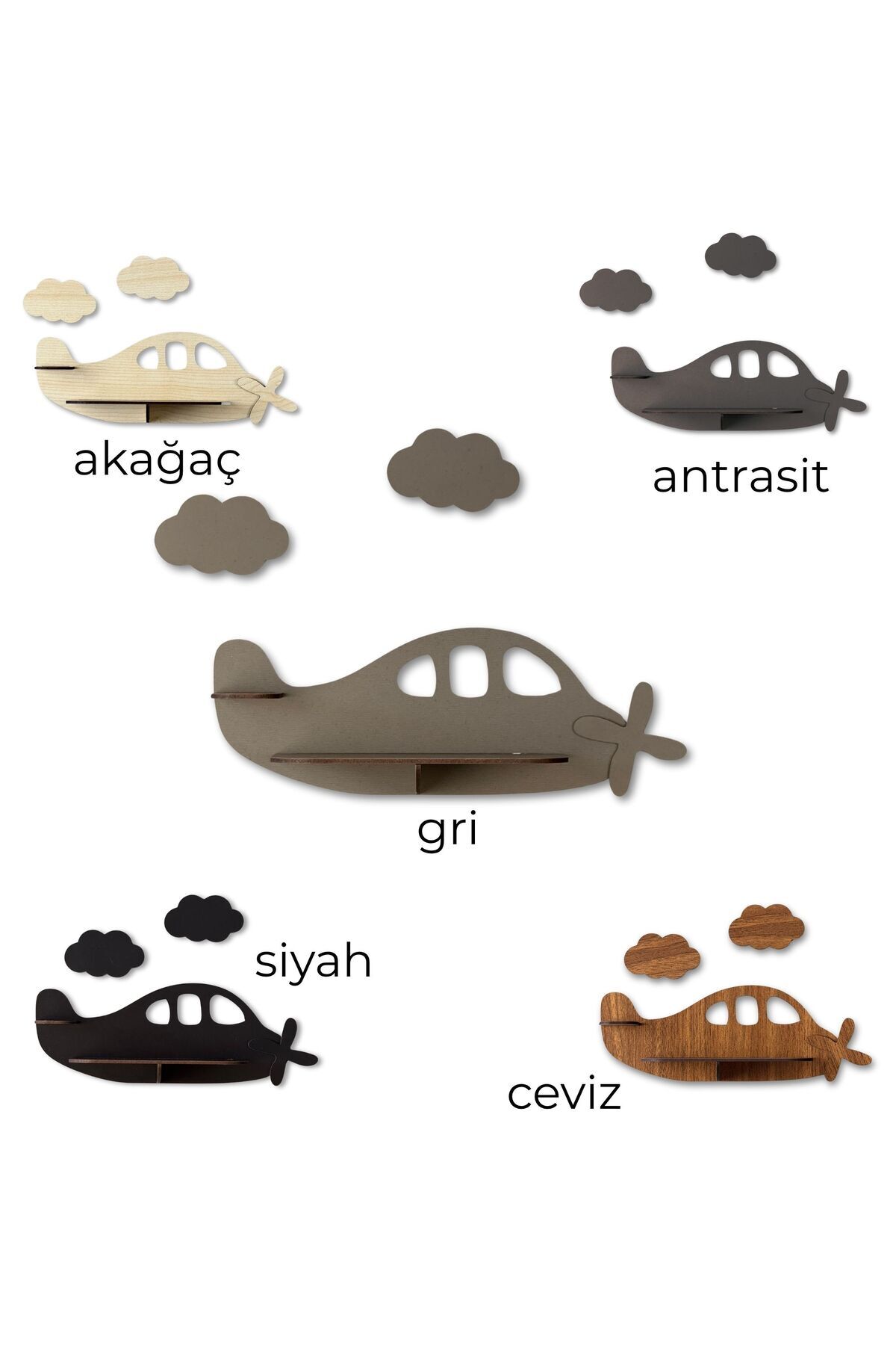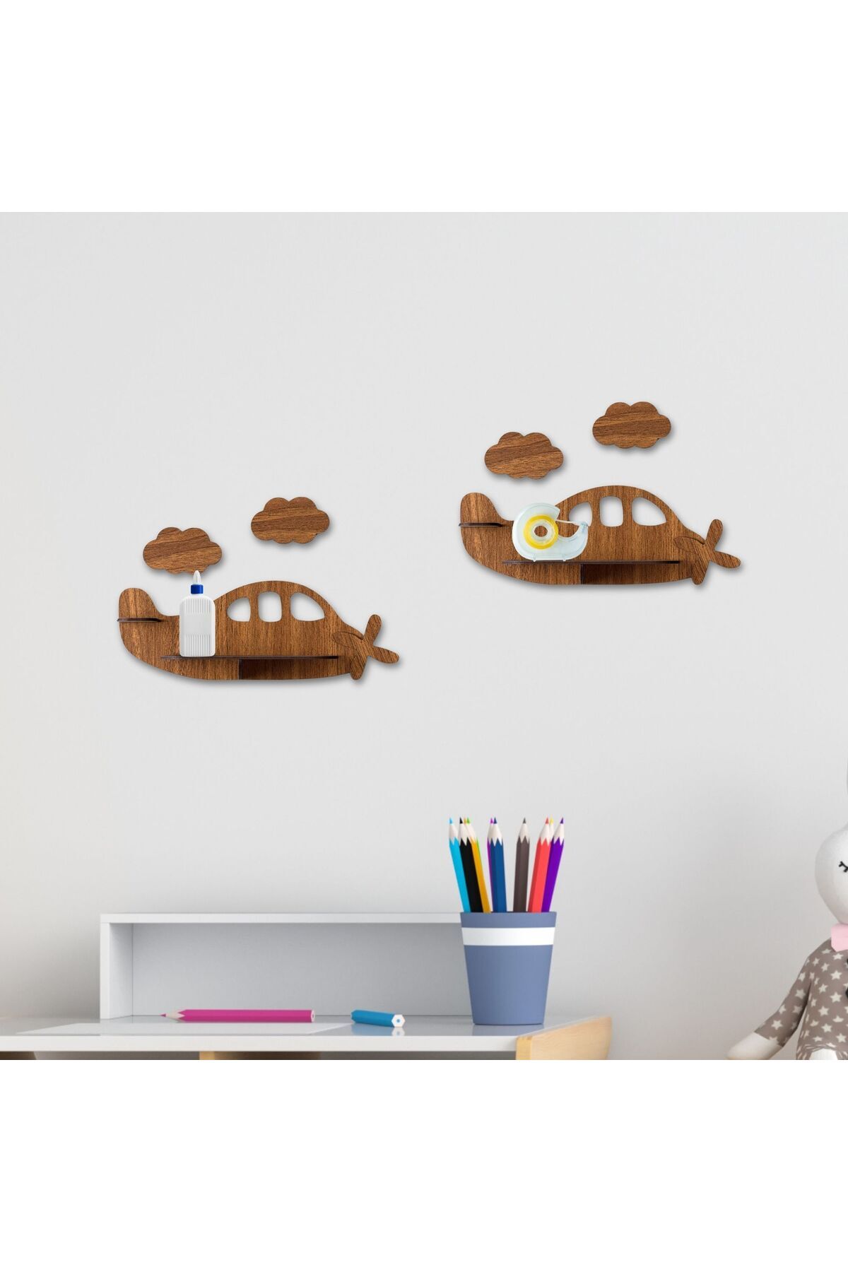 2'li Uçak Temalı Ahşap Duvar Rafı | Çocuk Odası Dekoru | 5 Renk | MDF Raf Ünitesi Uçak Figürlü Dekor