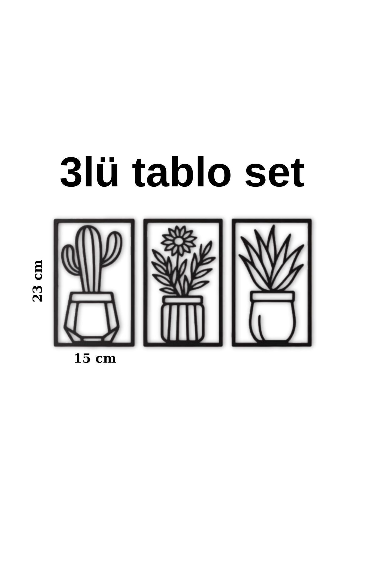 Evinize doğallık katın! 15x23 cm ölçülerindeki bu 3’lü MDF kaktüs tablo seti, modern çizgileriyle her duvarla uyum sağlar.; Hafif yapısı ve çift taraflı bantla kolay montaj özelliği sayesinde delik açmadan dekoratif bir görünüm elde edebilirsiniz.; Oturma odası, yatak odası veya ofis için mükemmel bir seçimdir.;