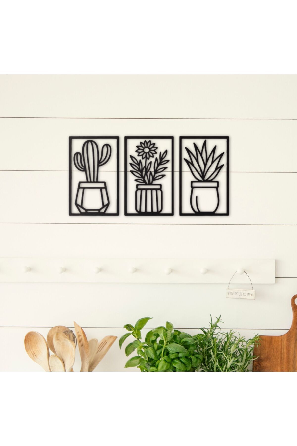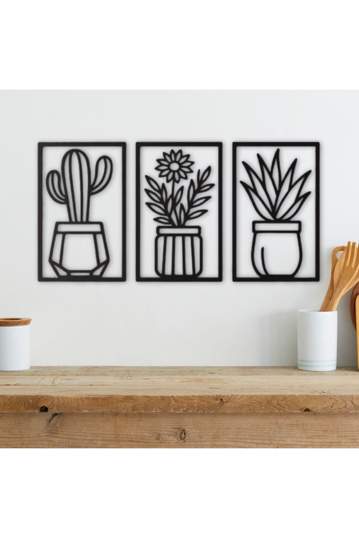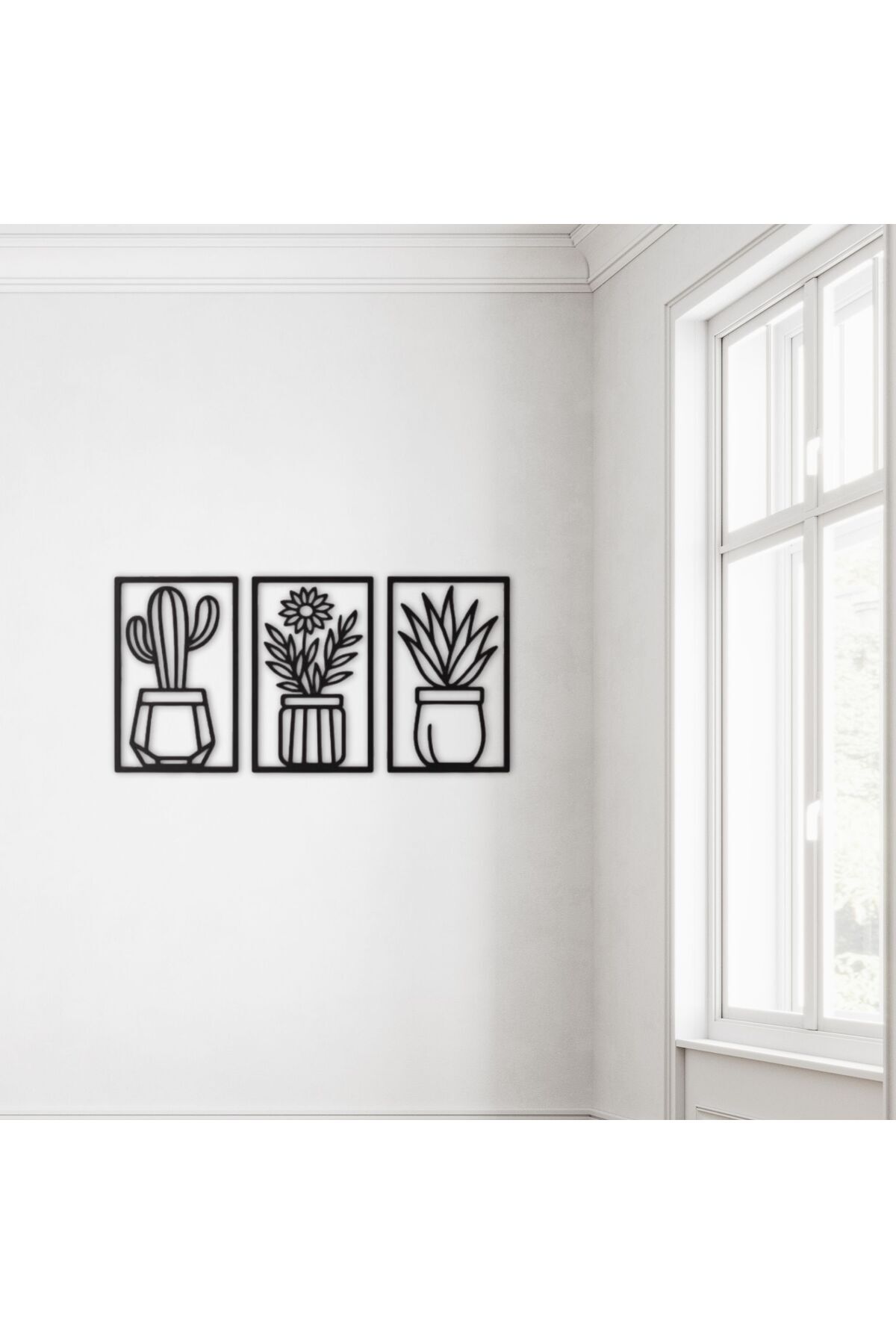 3’lü Kaktüs MDF Duvar Dekoru Seti | Modern Siyah Metal Görünümlü Bitki Tablo