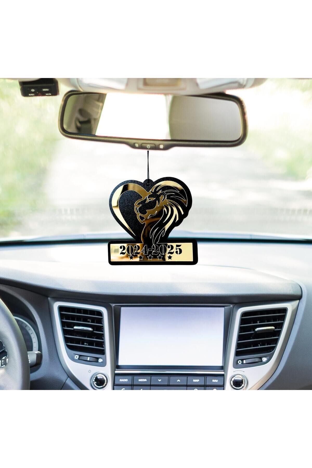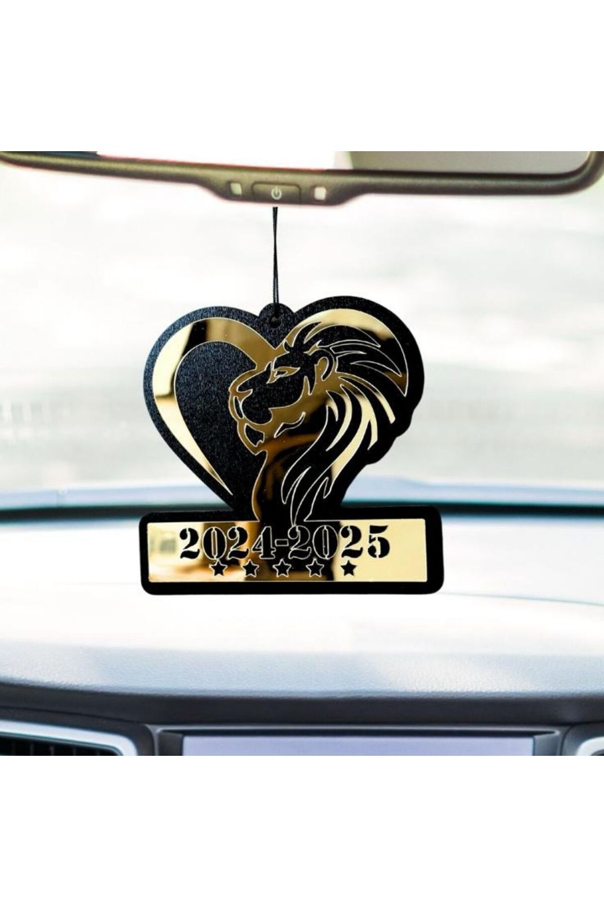 5 Yıldız Temalı Aslan Figürlü Ahşap Dikiz Aynası Süsü – Gold Pleksi Tasarım