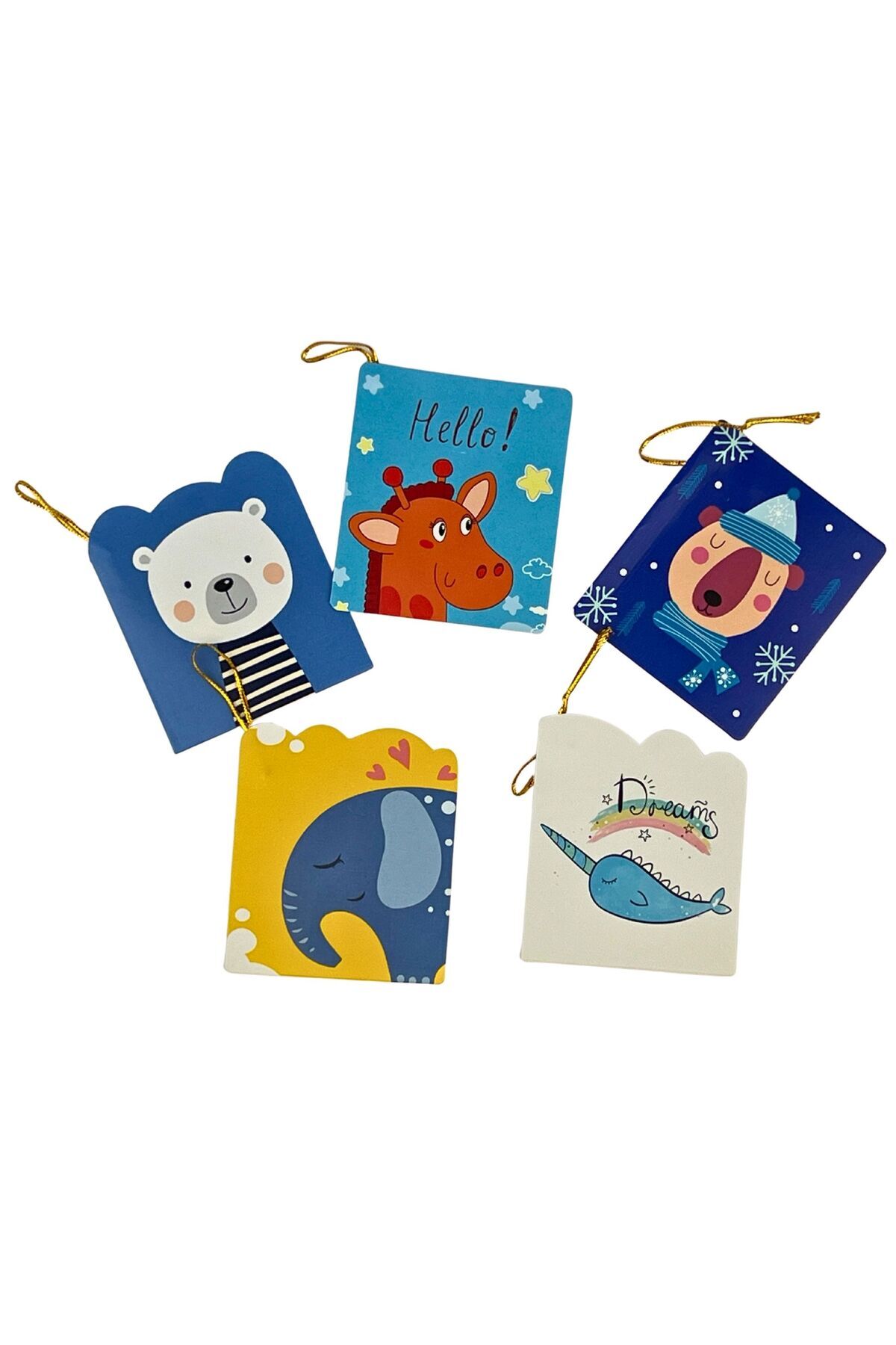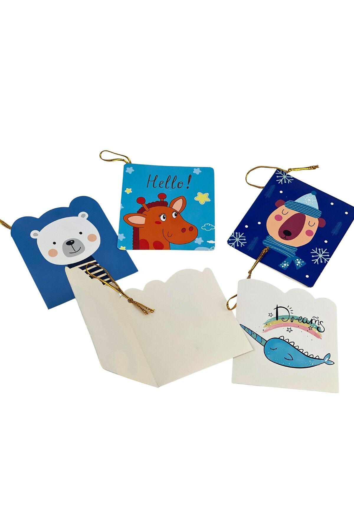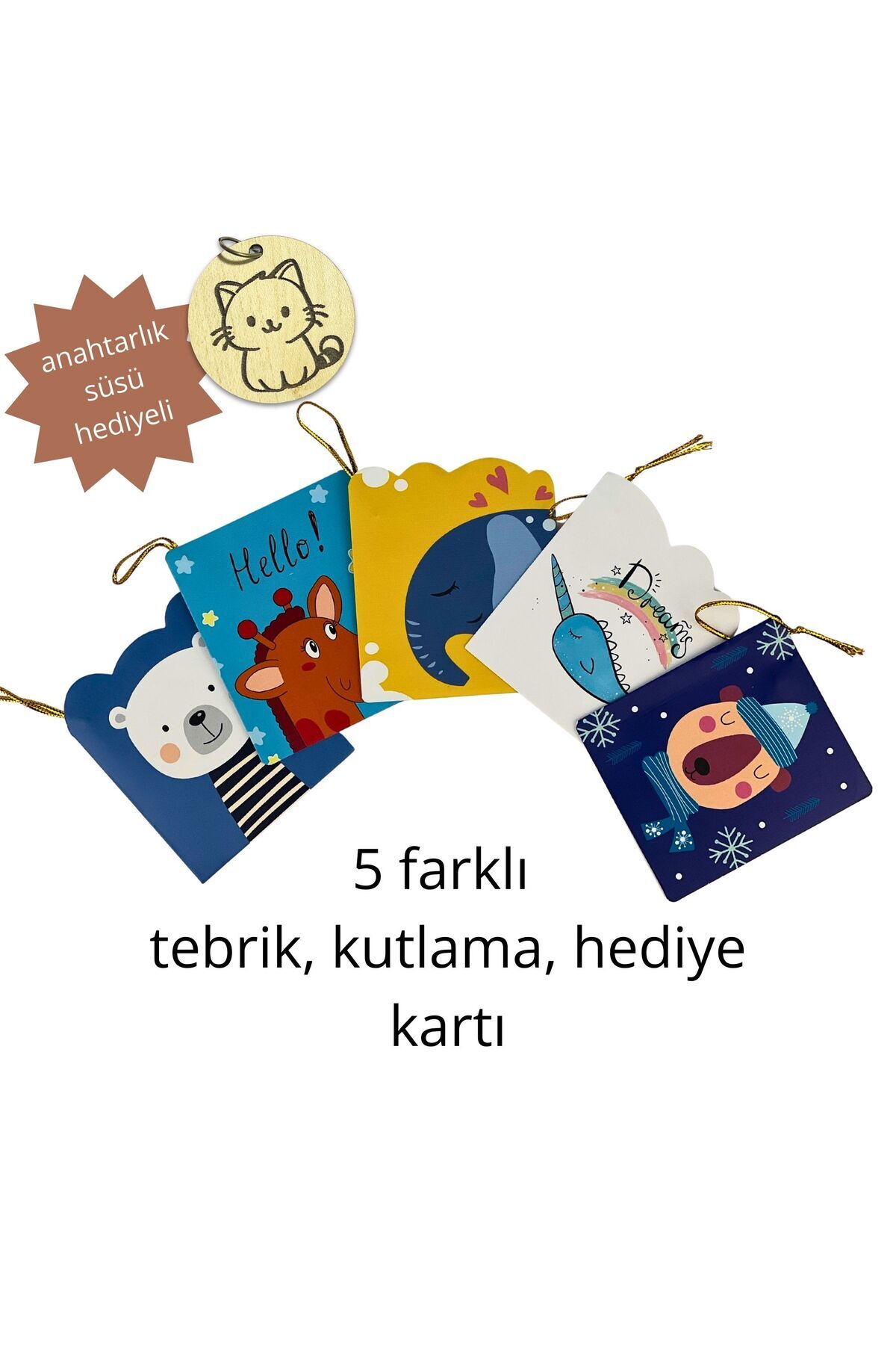 5’li Sevimli Desenli Hediye Kartı Seti Tebrik, Doğum Günü, Yeni Yıl, Özel Gün Kutlama Kartı