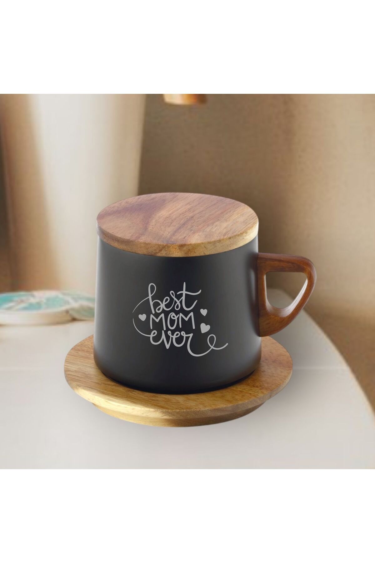 Ahşap Altlıklı Çelik Termos Bardak 250 ml Kapasiteli Annelere Özel Kazıma Desenli Termos-best Mom