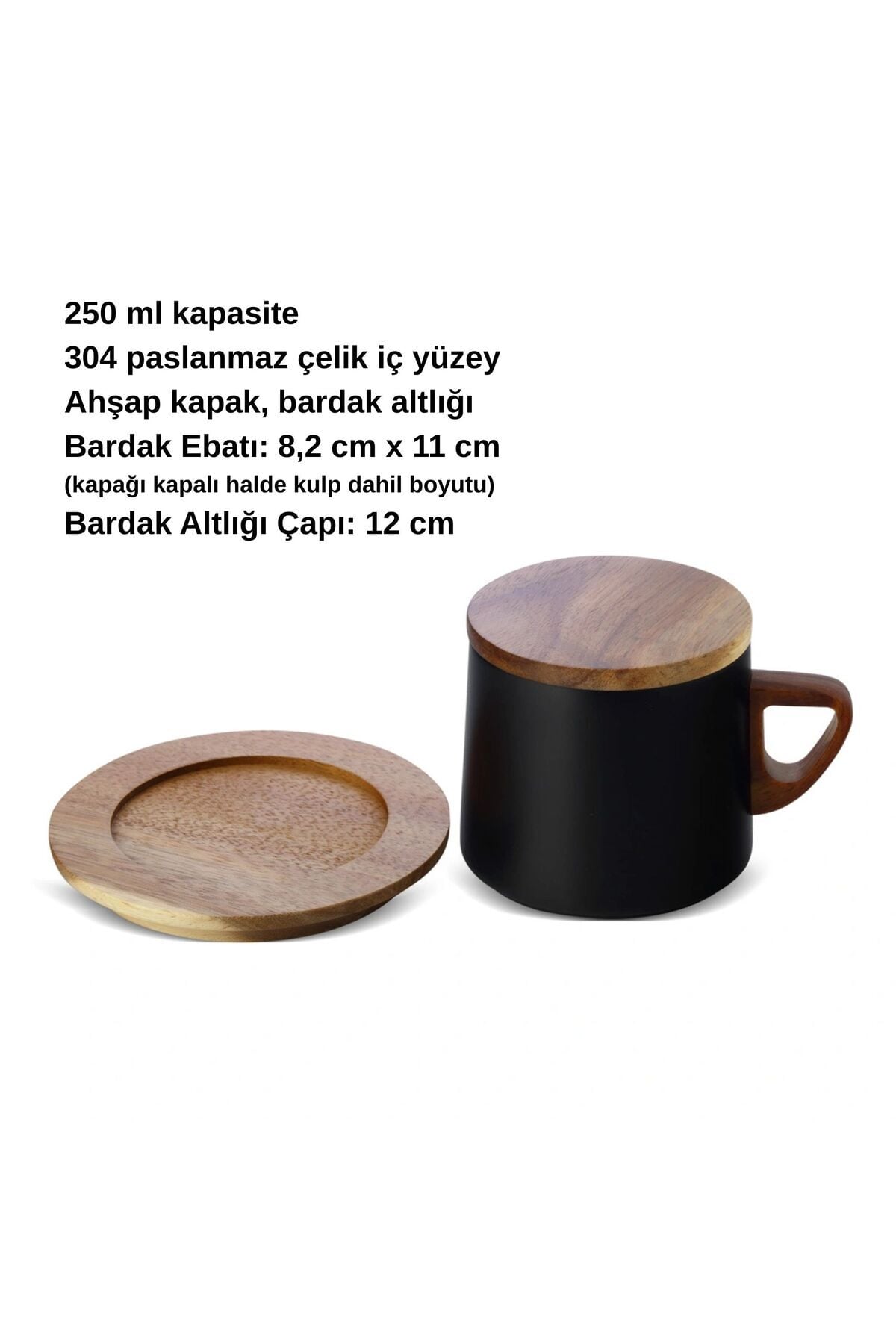 Annem yazılı çelik termos, 250 ml kapasiteye sahip, içi paslanmaz çelikten üretilmiş ve ısıyı koruyan termos özellikli premium bir kupa bardaktır. Mat siyah gövdesi; doğal ahşap kapağı, şık altlığı ve ergonomik ahşap kulpu ile mükemmel bir kontrast yaratır. Gövdesindeki lazer kazıma desen ve yazılar soyulmaz, silinmez ve zamana meydan okur.