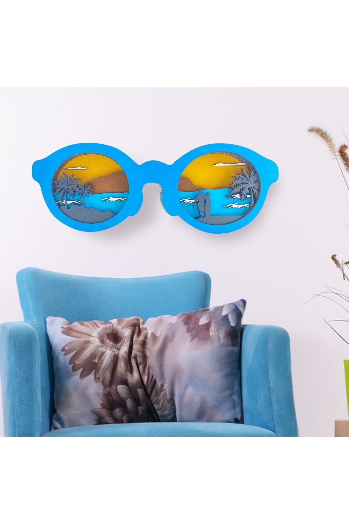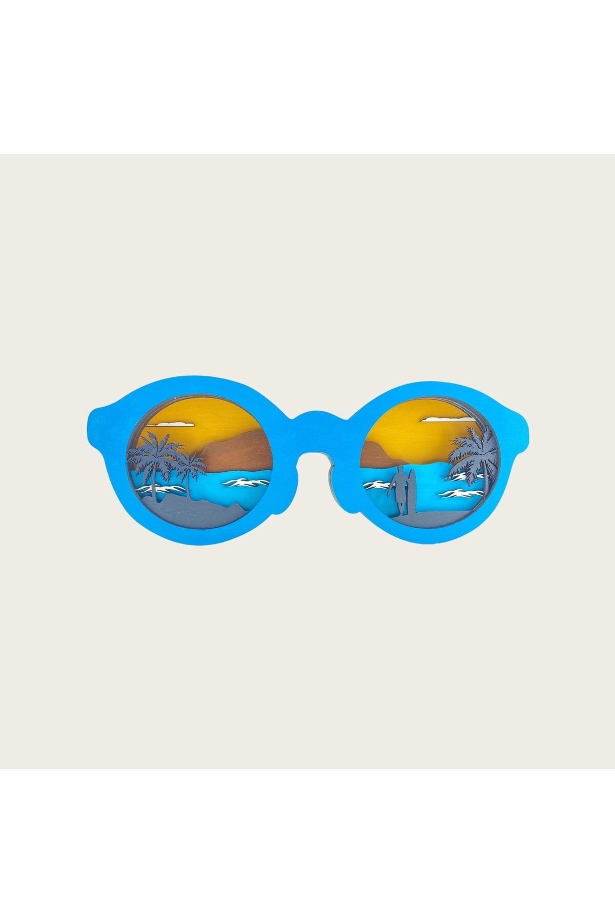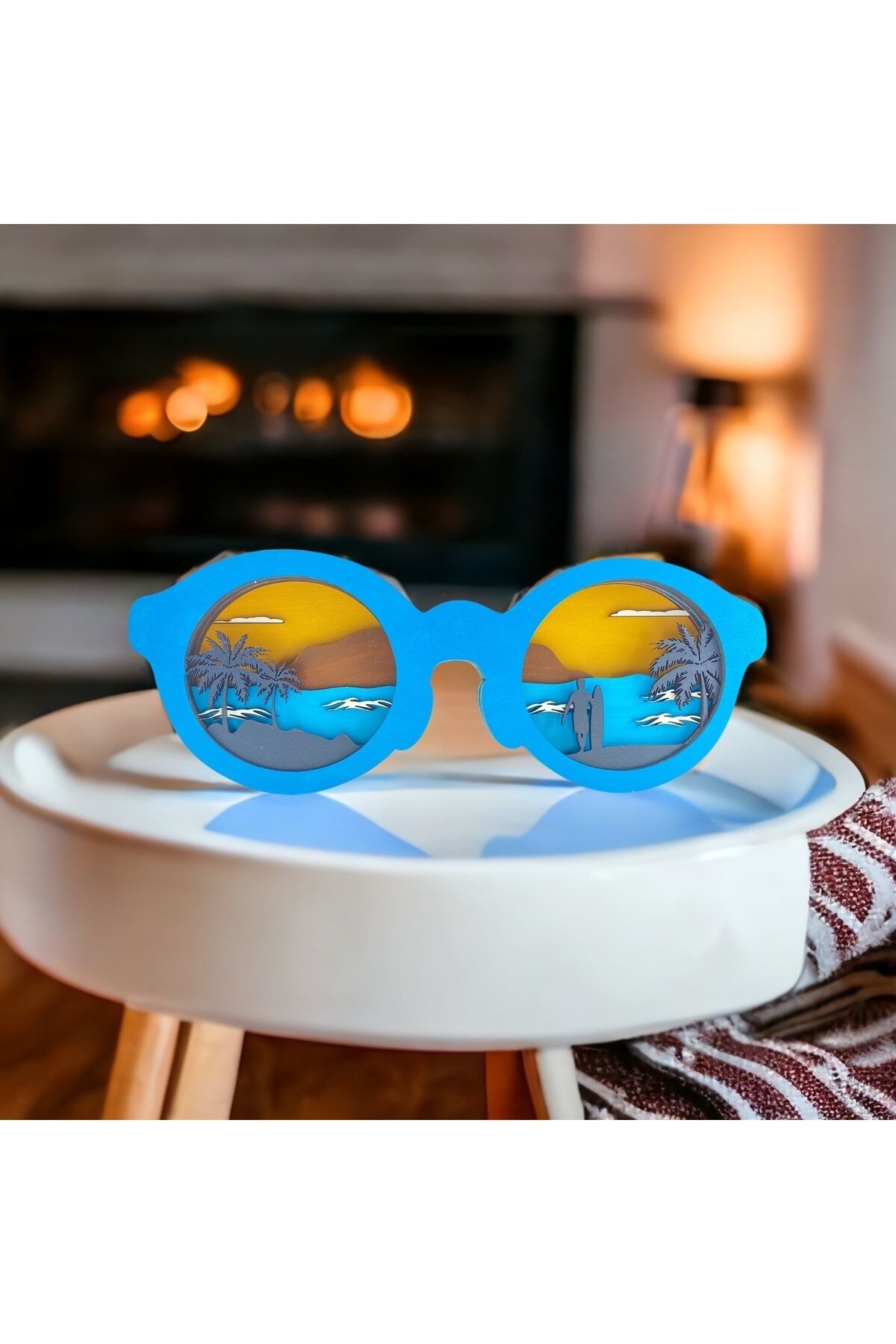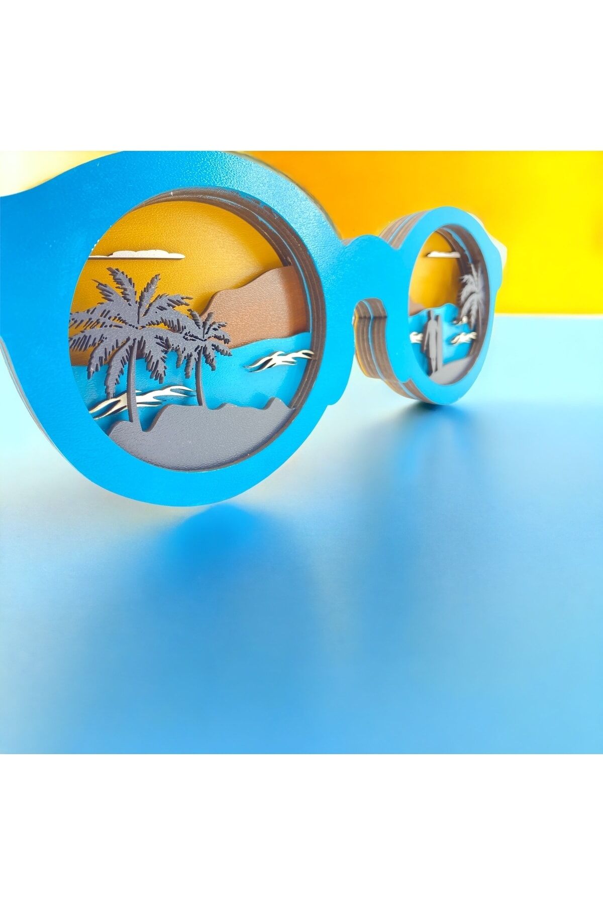 Ahşap Mdf Çok Katmanlı Gözlük Şeklinde Deniz Ve Kumsal Duvar Tablosu Veya Masa Süsü