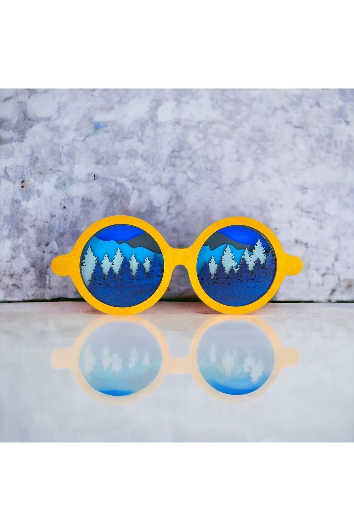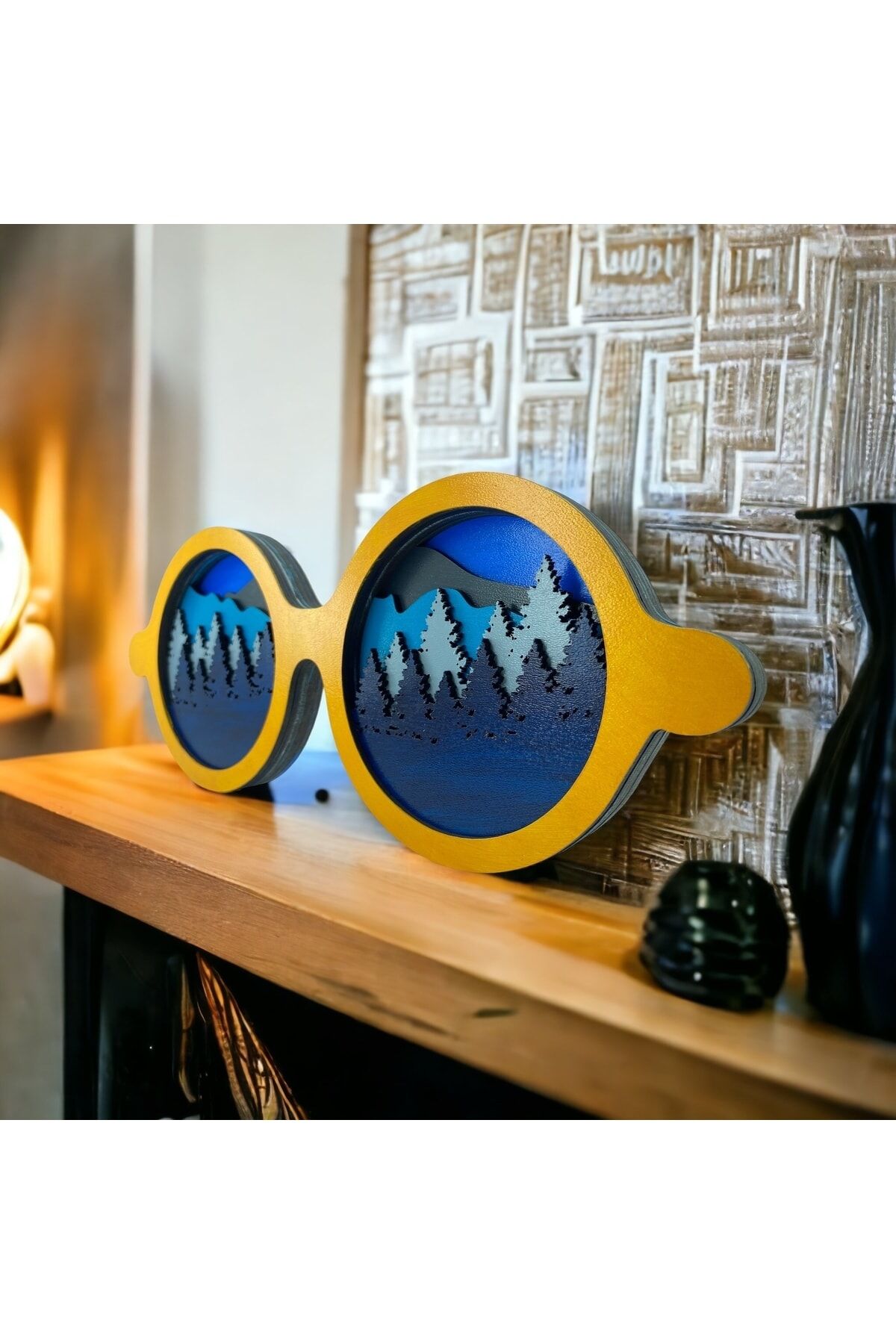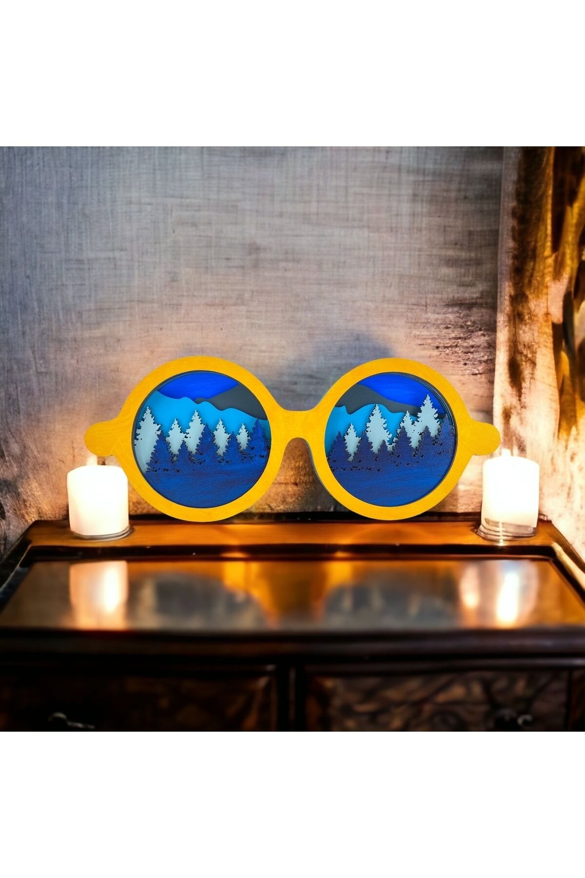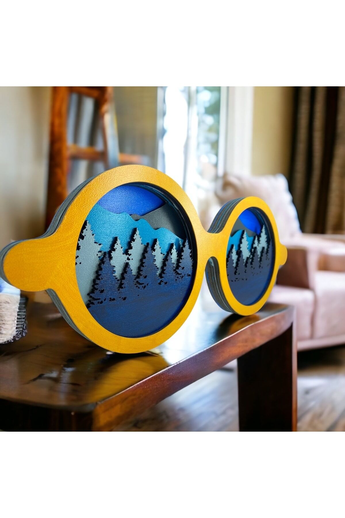 Ahşap Mdf Çok Katmanlı Gözlük Şeklinde Orman Duvar Tablosu Veya Masa Süsü