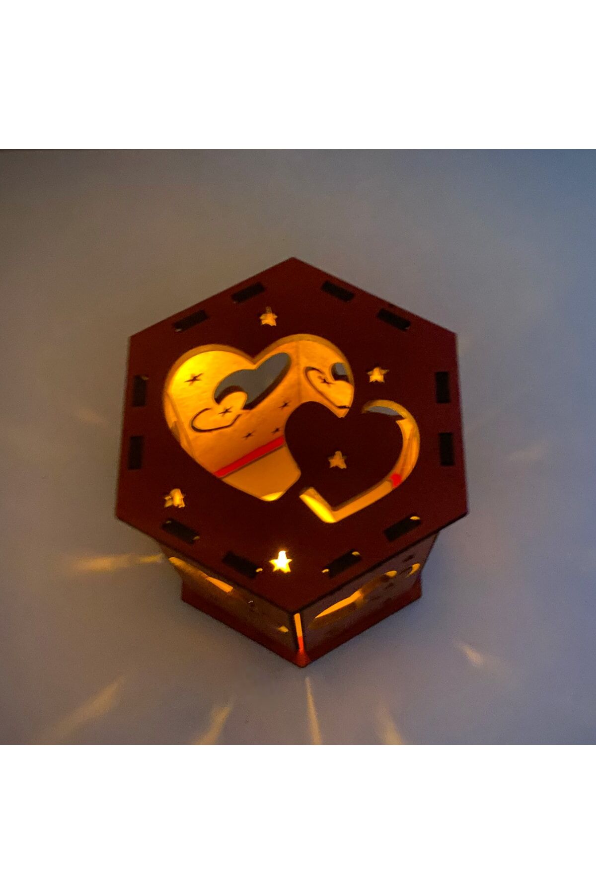 Ahşap Mdf Sevgililer Günü Tealight Kalp Kalbe Aydınlatma