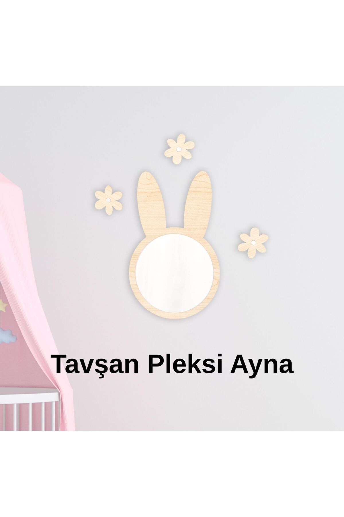 Ahşap Pleksi Ayna Tavşan Duvar Dekoru – 30x25 cm Çocuk Bebek Odası Dekoratif Aksesuar