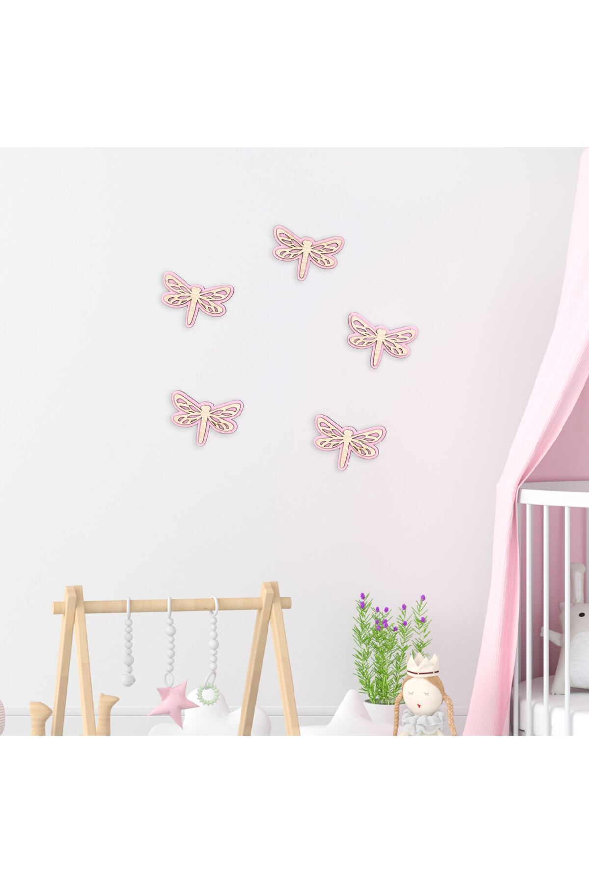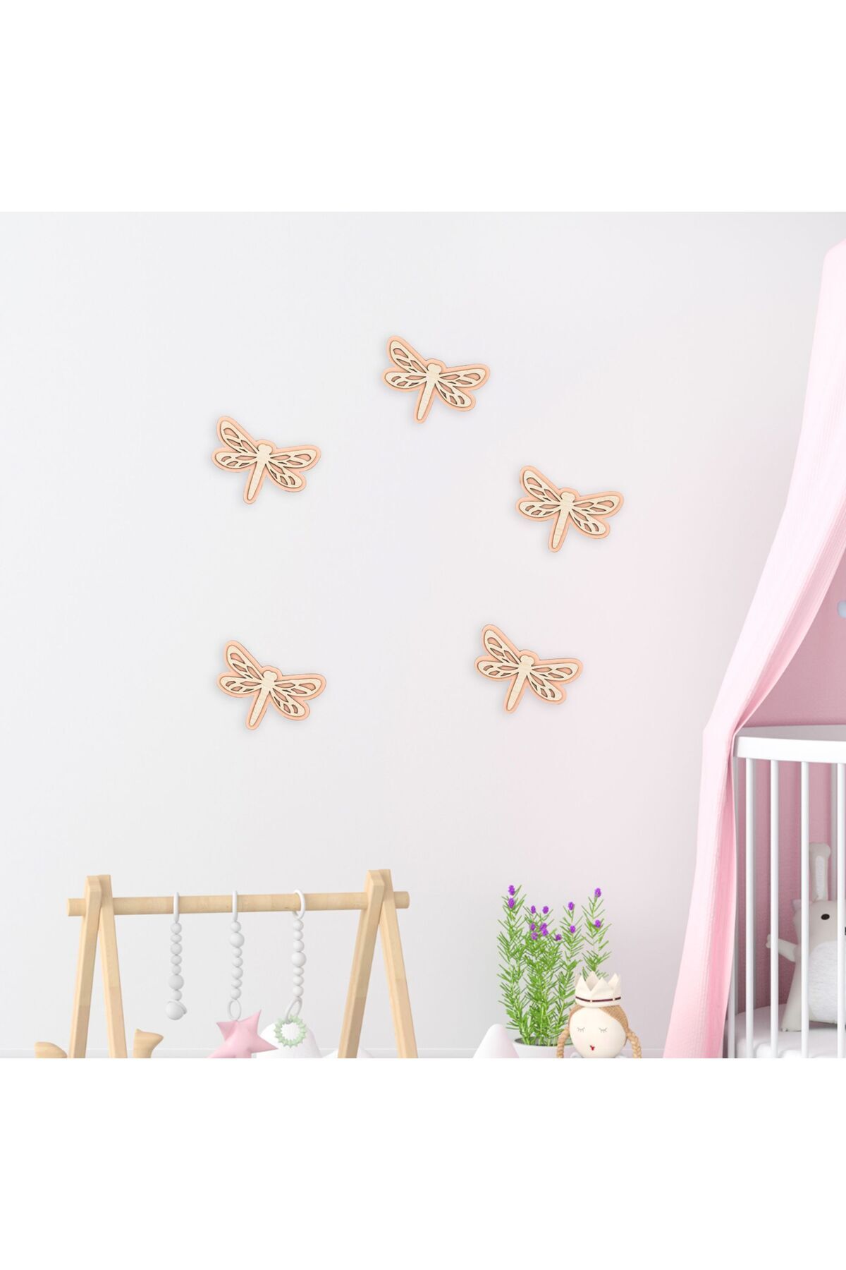 Ahşap Yusufçuk Duvar Süsü 5’li Set – Çocuk Odası Dekoru | 5 Renk Seçeneği, Bebek Odası Dekorasyon hdco00068
