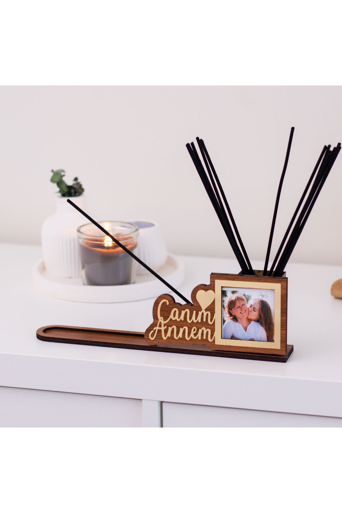 Anneler Günü Hediyesi | Canım Annem Yazılı Gold Detaylı Fotoğraf Çerçevesi ve Tütsülük