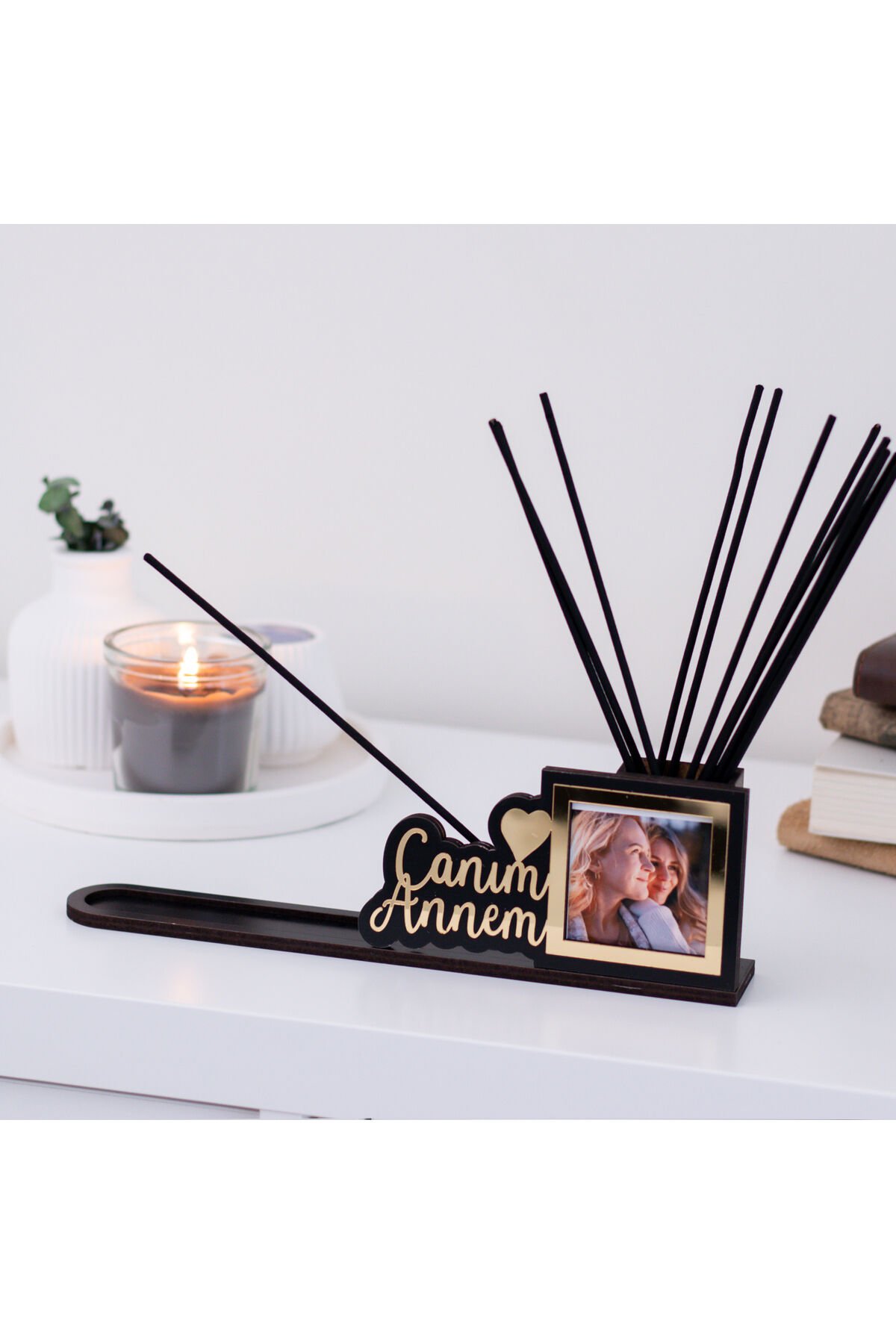 Anneler Günü Hediyesi | Canım Annem Yazılı Gold Detaylı Fotoğraf Çerçevesi ve Tütsülük