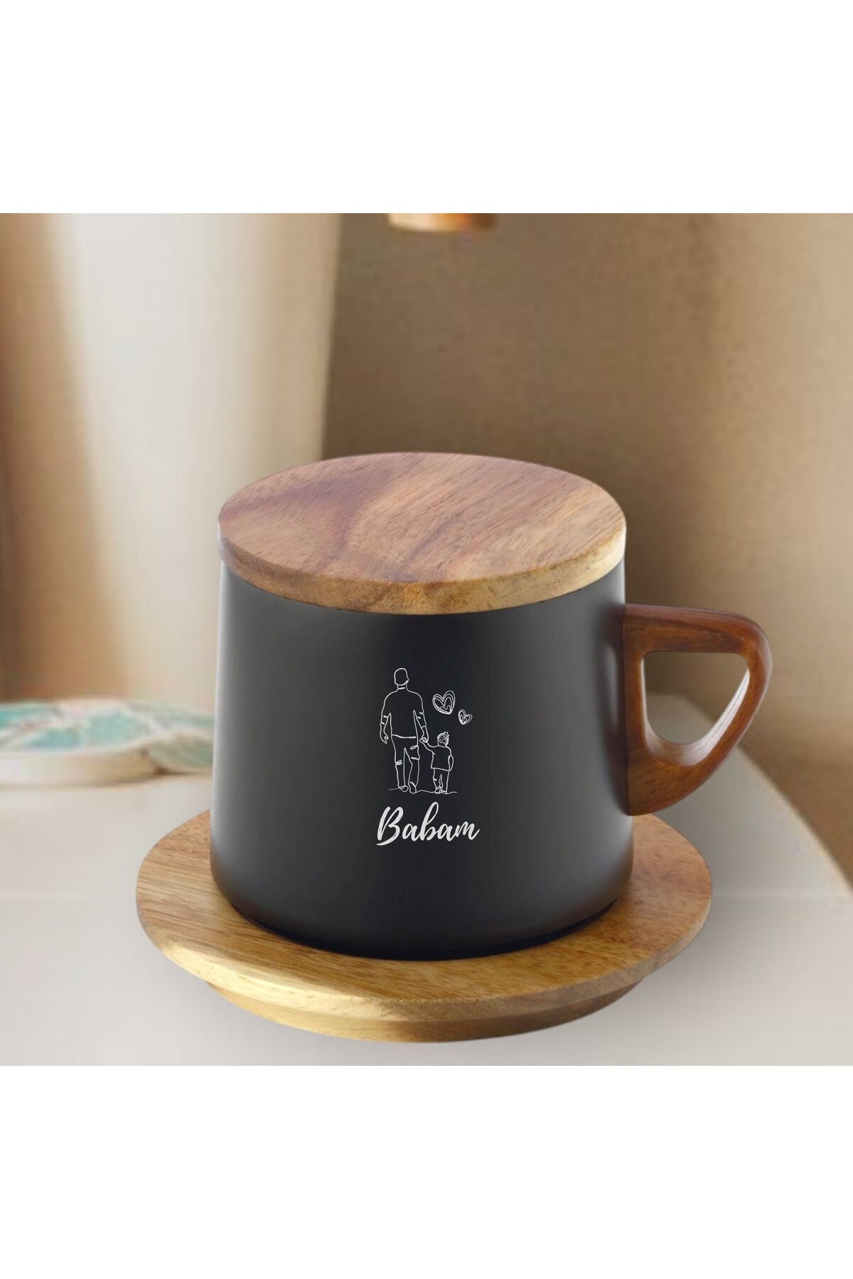 Babalar Günü Hediyesi Termos – Ahşap Kapaklı, Siyah Çelik, I Love My Dad Yazılı