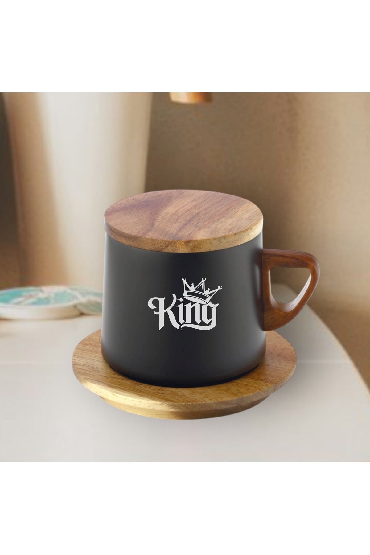 Babalar Günü Hediyesi Termos – Ahşap Kapaklı, Siyah Çelik, I Love My Dad Yazılı