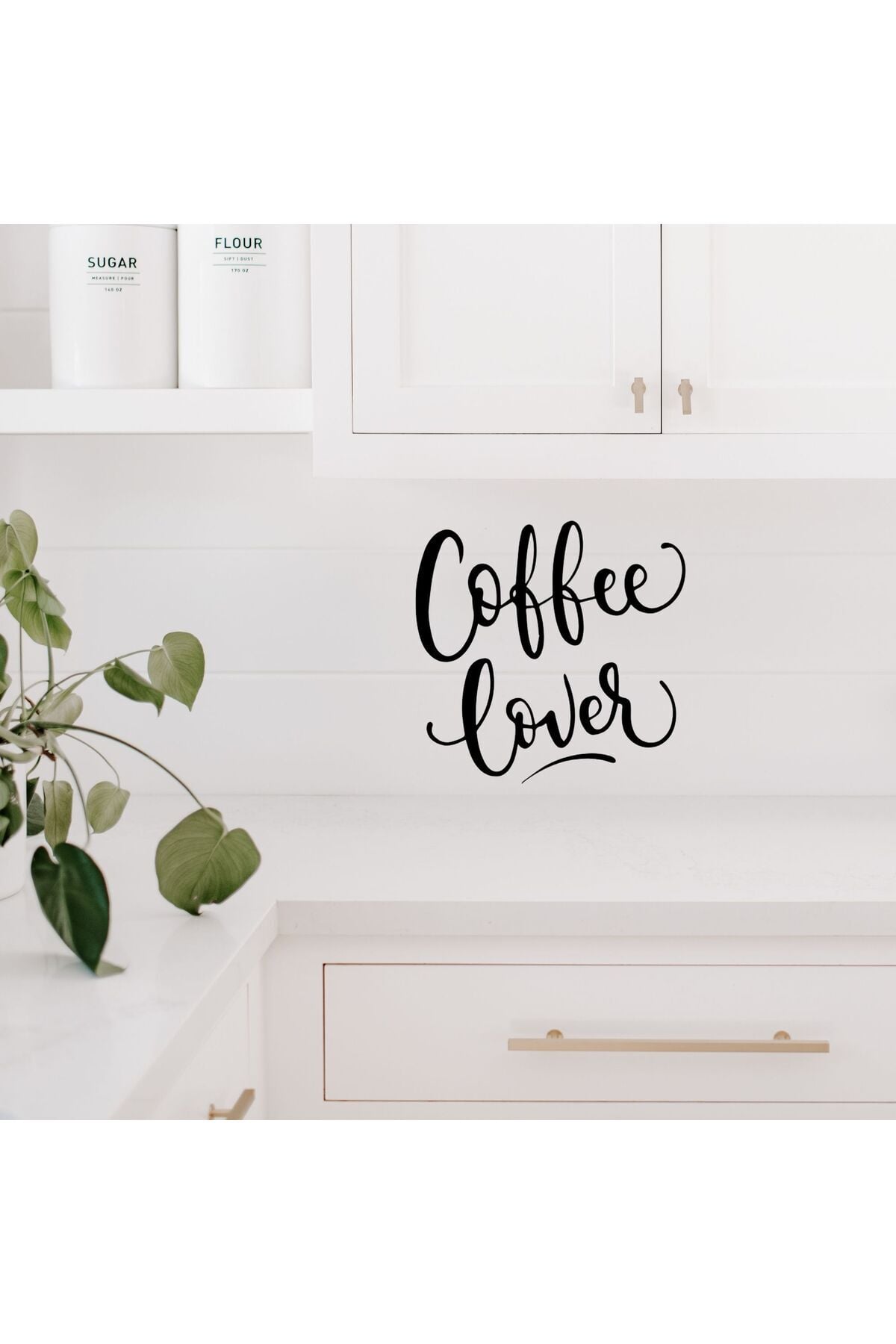 Coffee Lover Ahşap Duvar Yazısı - 30x30 cm Siyah Dekoratif Kahve Sever Duvar Dekoru