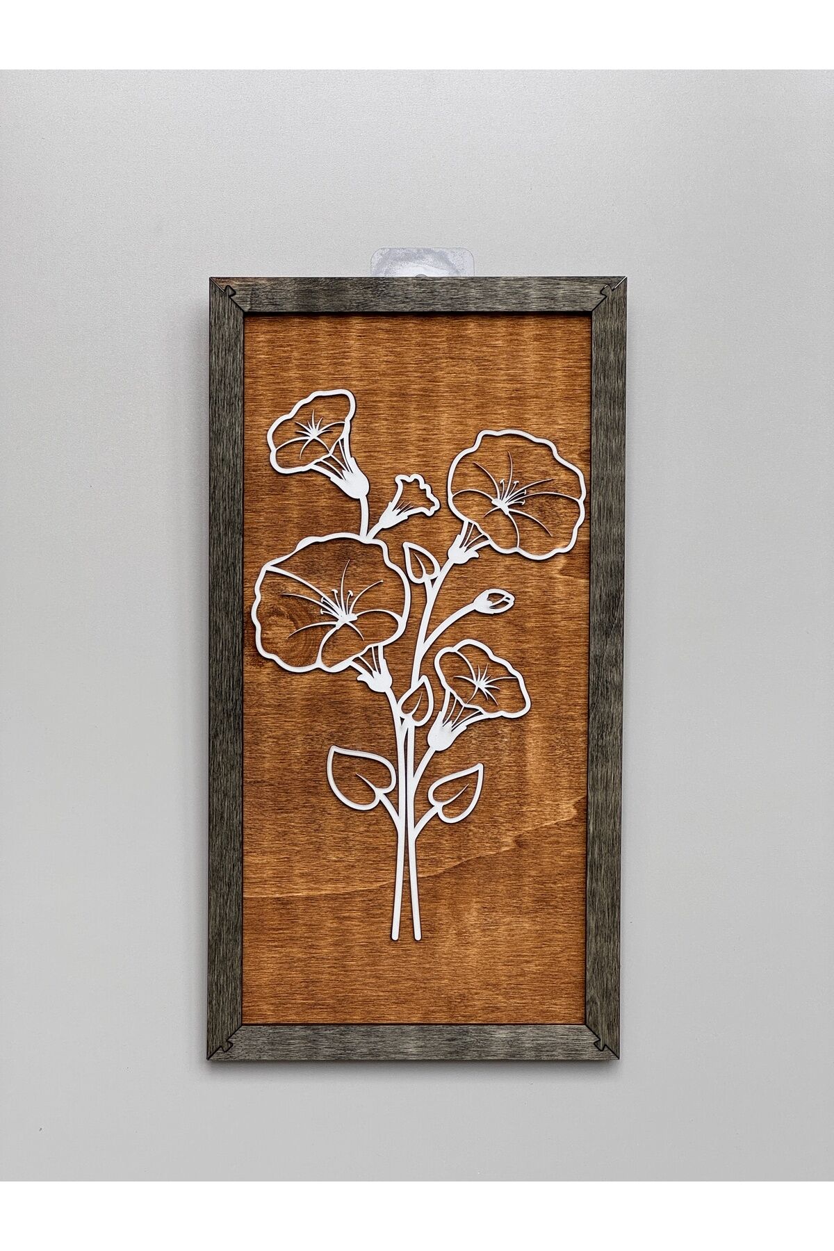El Boyaması Tik - Gri Renkli Zemin Üzerinde Beyaz Çiçekli 3'lü Tablo Seti