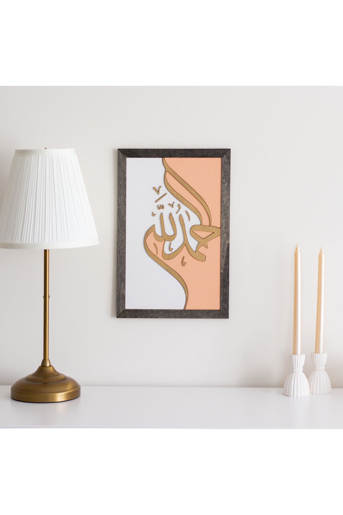 Elhamdülillah Yazılı Gold Ahşap İslami Duvar Tablosu – Arapça Dekoratif Hat Yazısı hddd00093