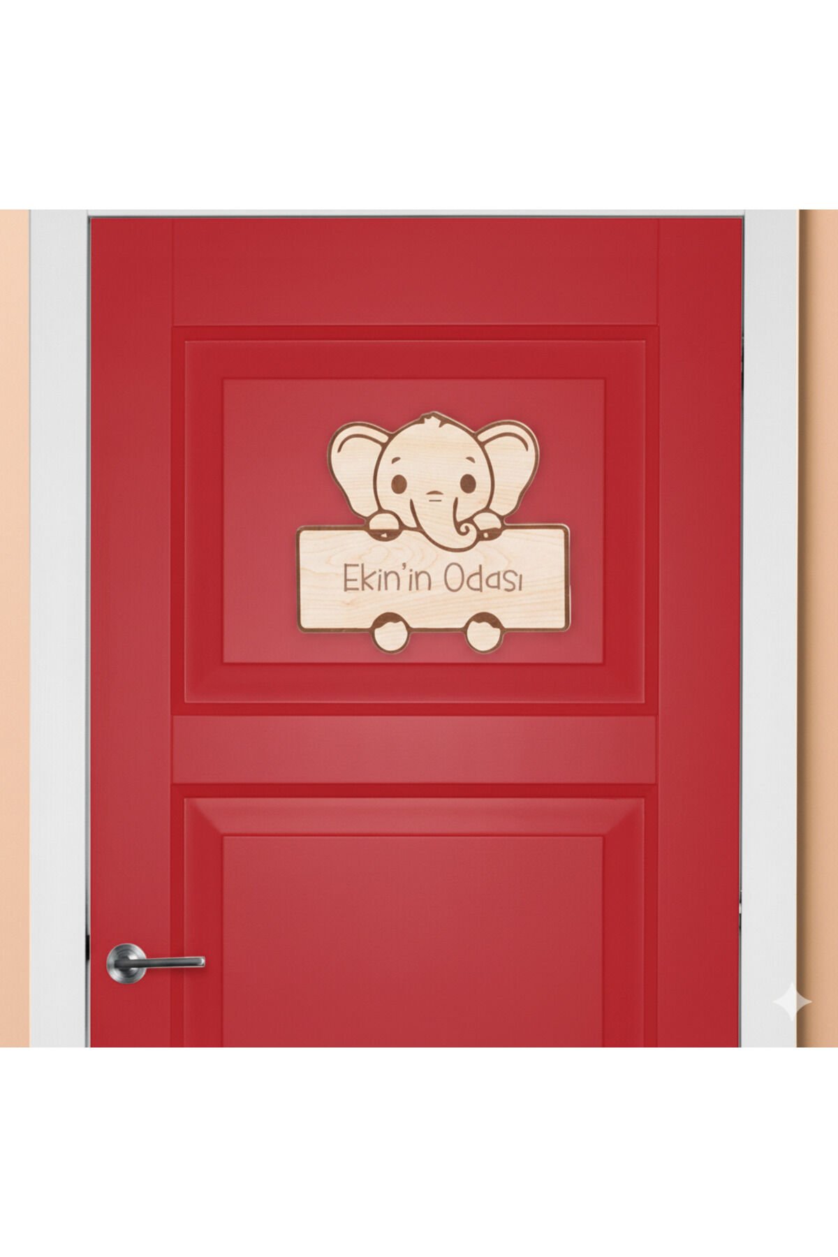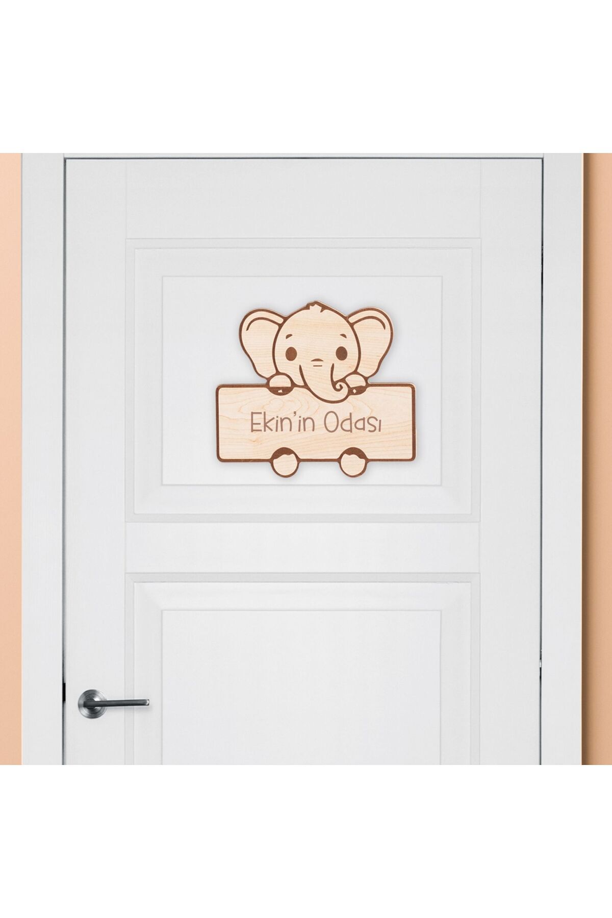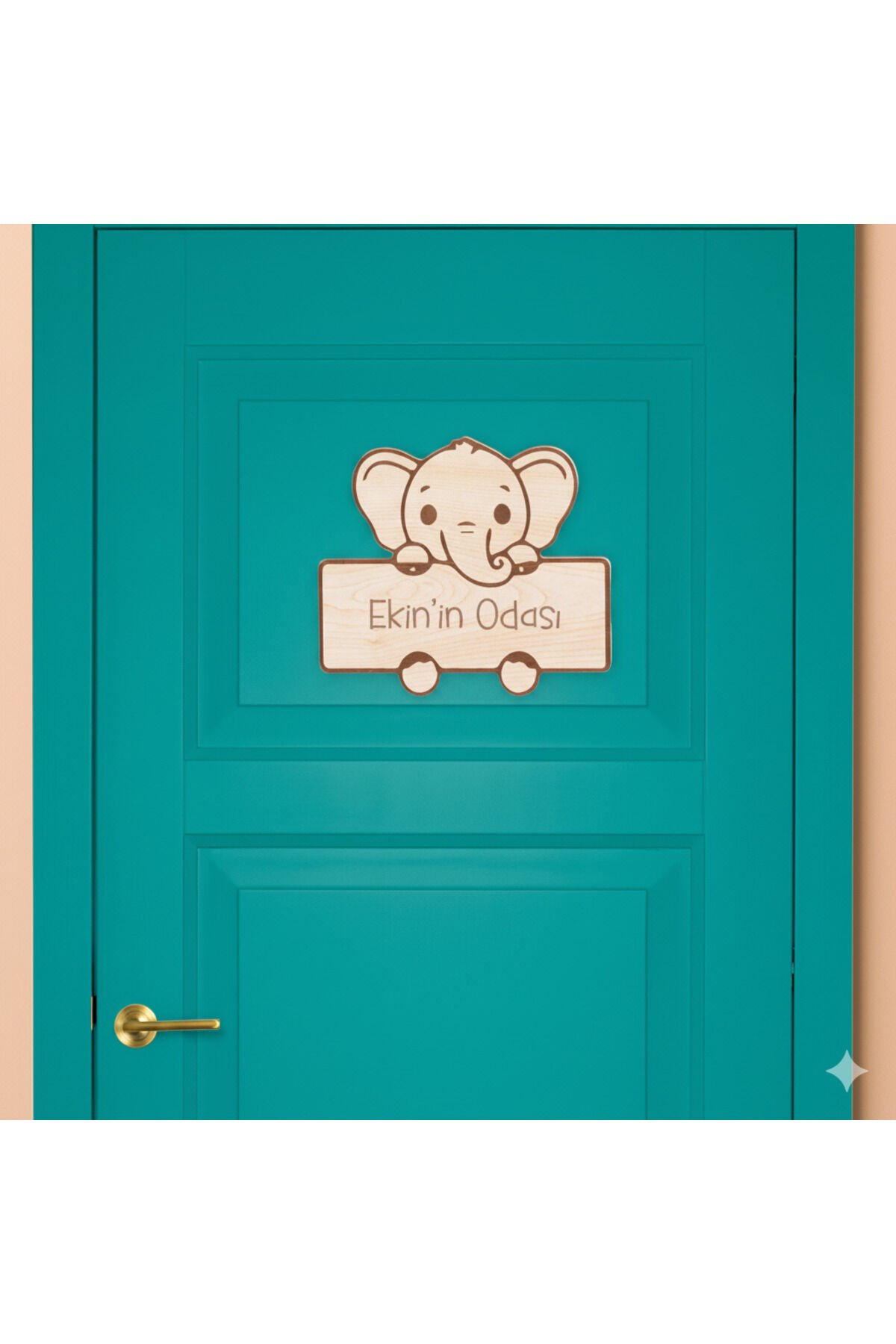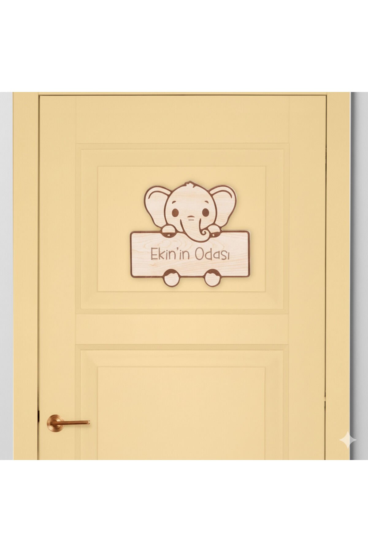 Fil Figürlü Ahşap Kapı Süsü 25x25 cm - Çocuk Odası, Anaokulu ve Kreş Dekoru