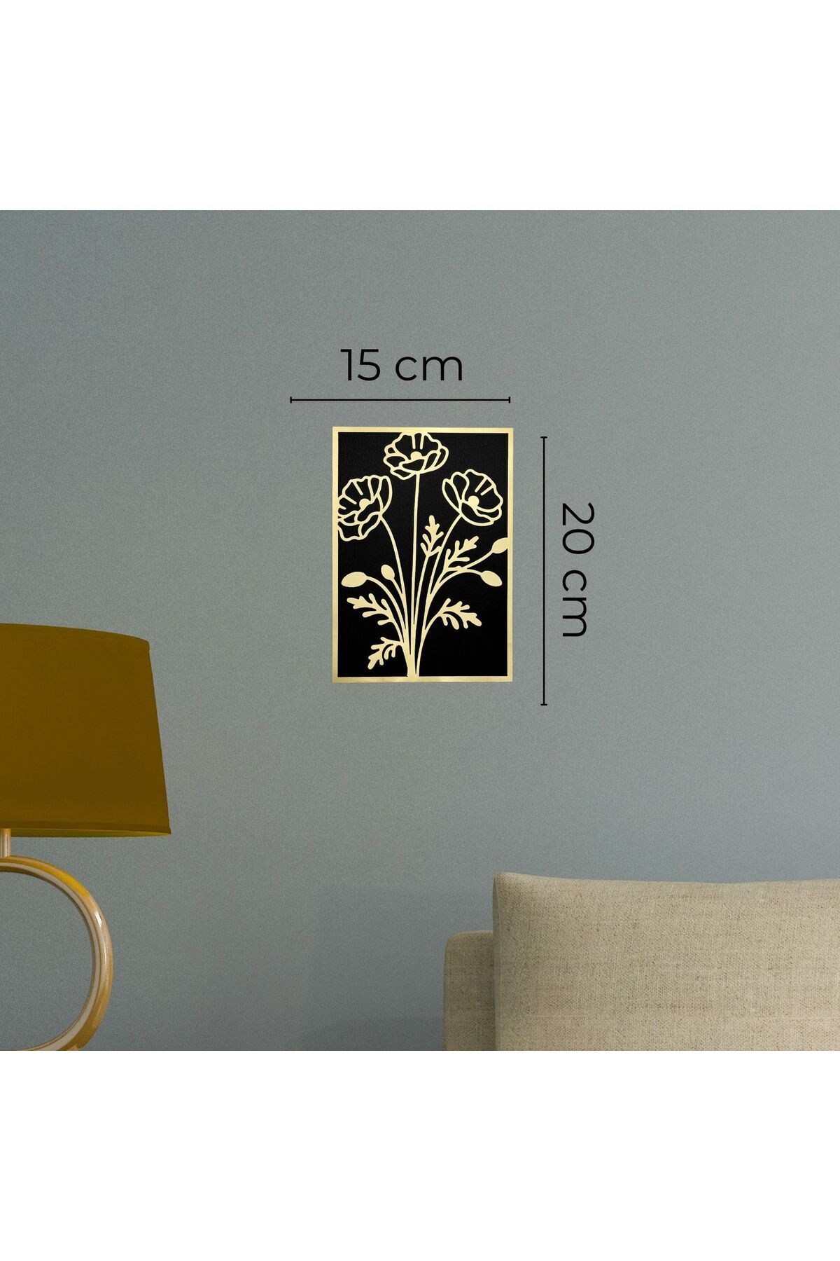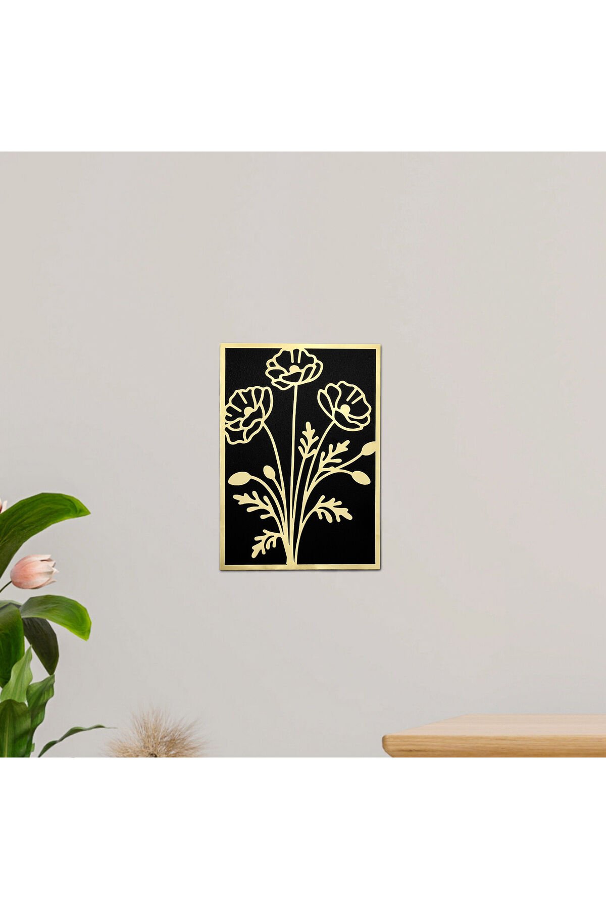 Gold Pleksi Çiçek Motifli Siyah Ahşap Dekoratif Tablo 15x20 cm Şık Duvar Süsü Ev Ofis Dekor