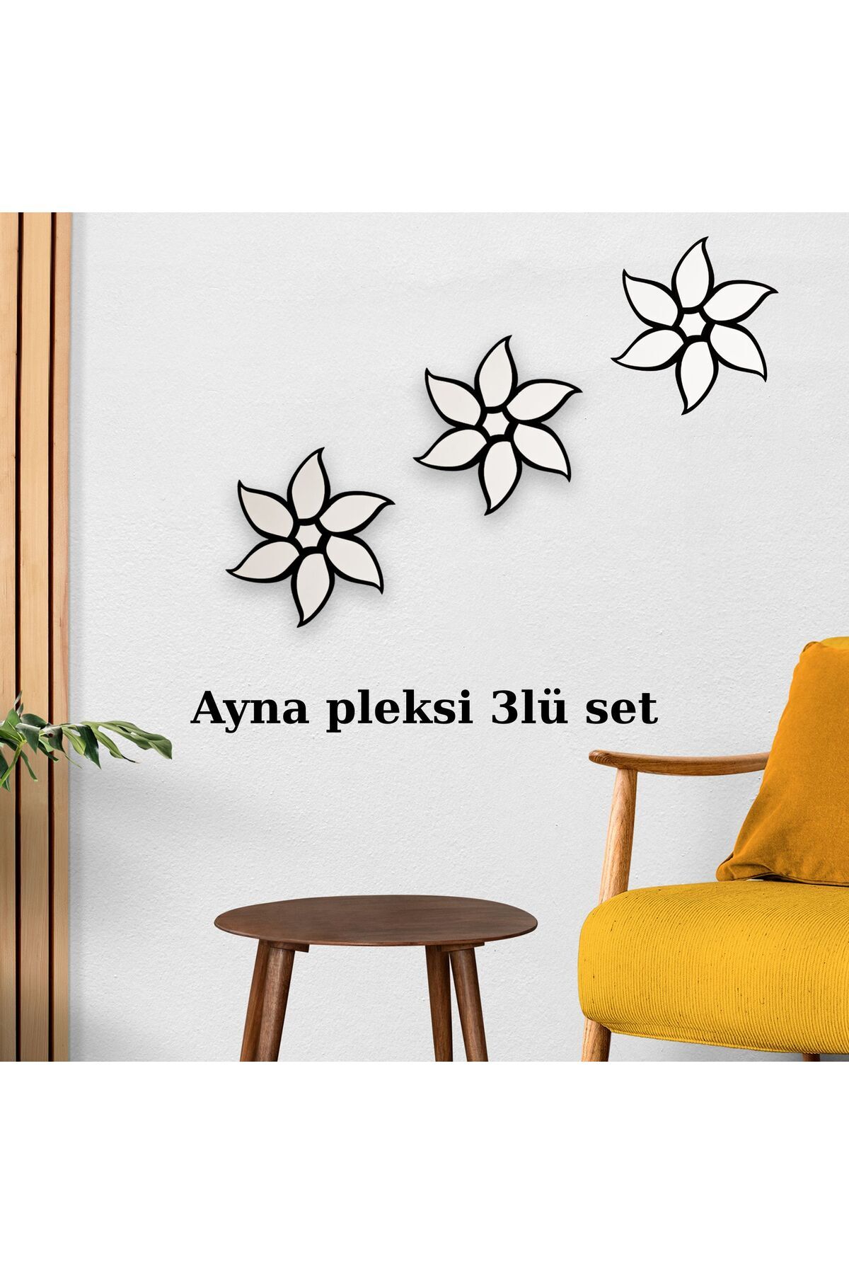 Yaşam alanlarınıza zarif ve modern bir dokunuş kazandıracak Gümüş Ayna Pleksi Çiçek Duvar Süsü, göz alıcı tasarımıyla dikkat çeker. Siyah MDF üzerine lazer kesim gümüş pleksi ayna malzeme ile üretilmiştir. Işığı yansıtarak bulunduğu ortamda hem ferah hem de şık bir atmosfer yaratır.;Tekli, 2’li ve 3’lü set seçenekleriyleher duvar ölçüsüne ve dekorasyon tarzına uygun olarak tercih edilebilir. Gümüş rengi, özellikle minimalist, modern ve aydınlık mekanlarda öne çıkar.;