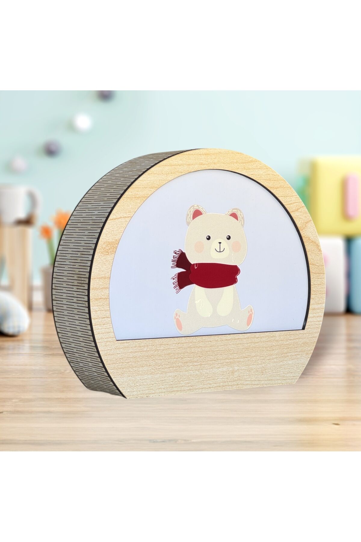 Kişiselleştirilebilir - Hayvan Figürlü Ahşap LED Gece Lambası - Çocuk Odası Masa Lambası hdco00025