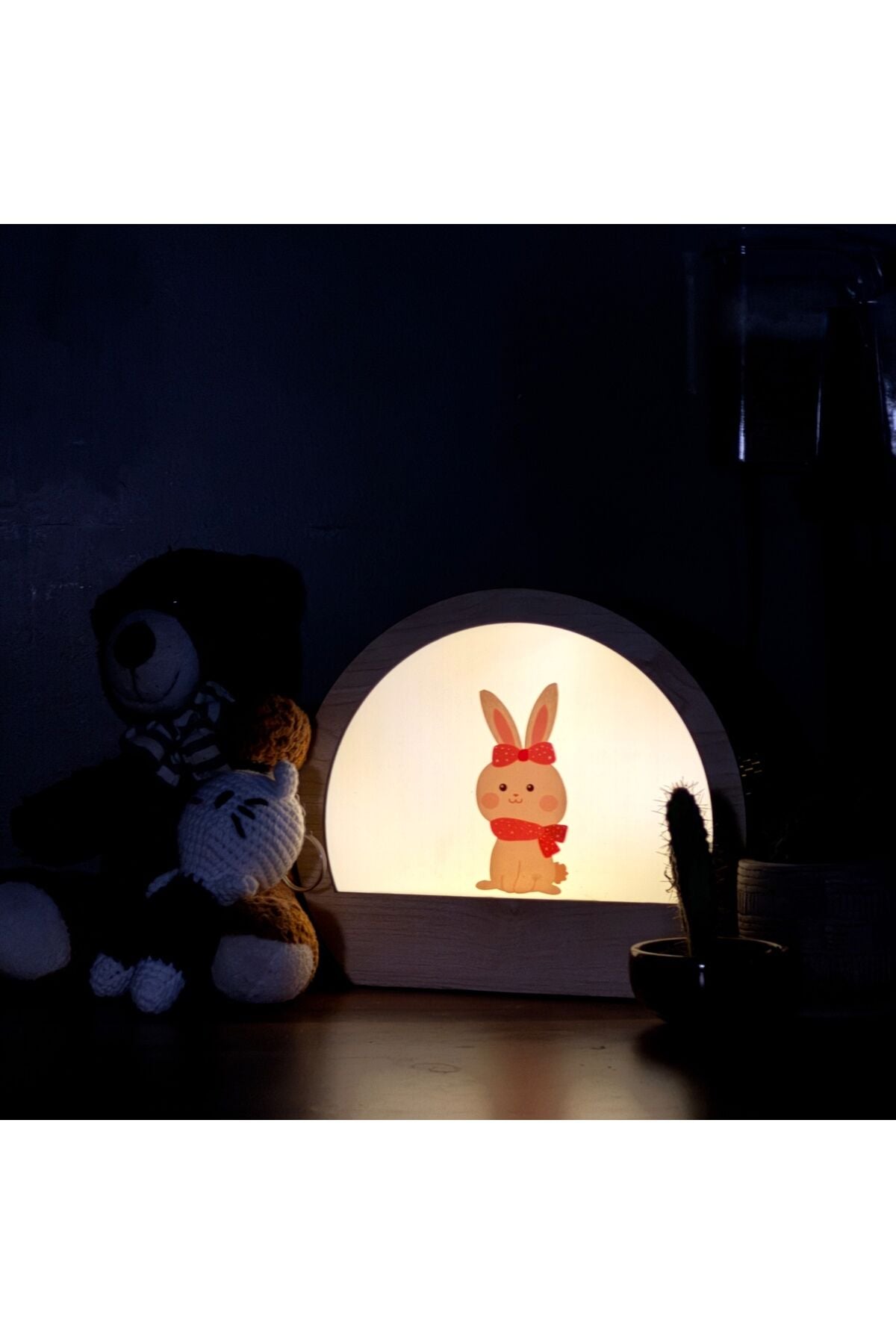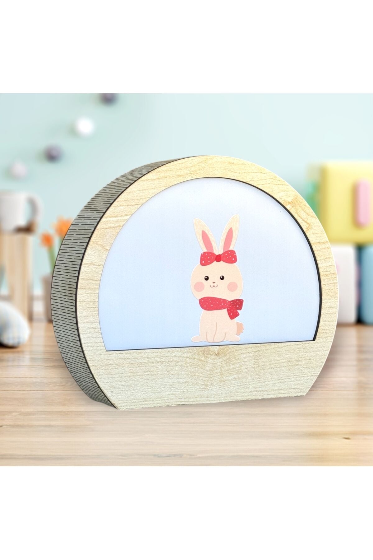Kişiselleştirilebilir - Tavşan Figürlü Ahşap LED Gece Lambası - Çocuk Odası Masa Lambası