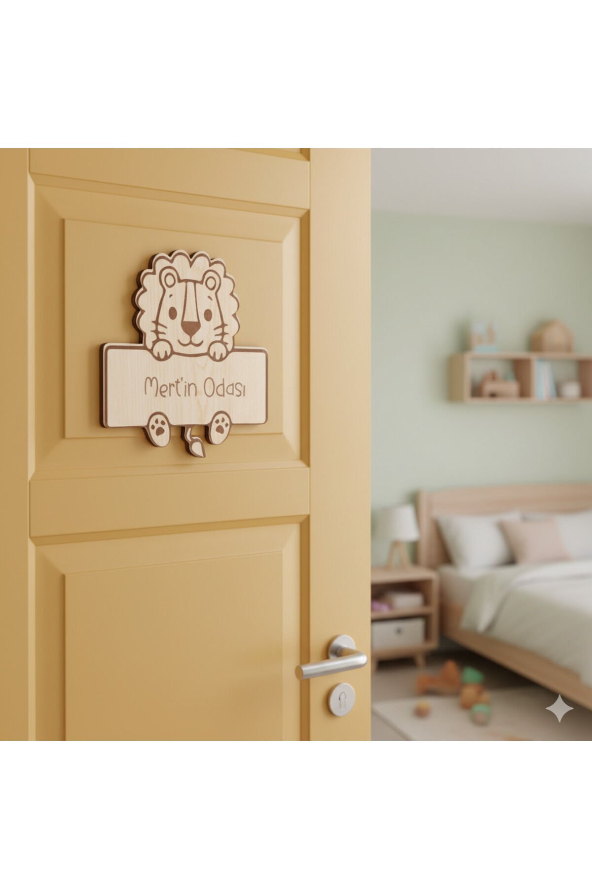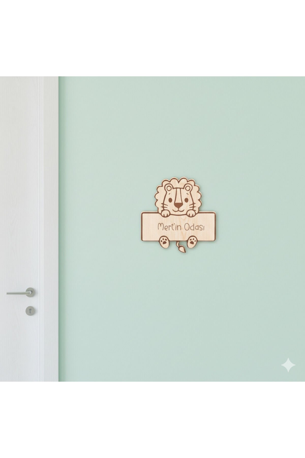 Kişiye Özel Ahşap Aslan Kapı Süsü – Çocuk Odası, Bebek Odası, Kreş ve Anaokulu Sınıf Dekoru