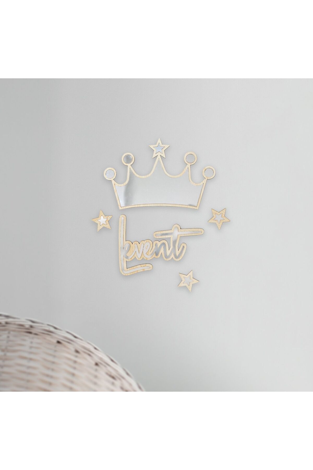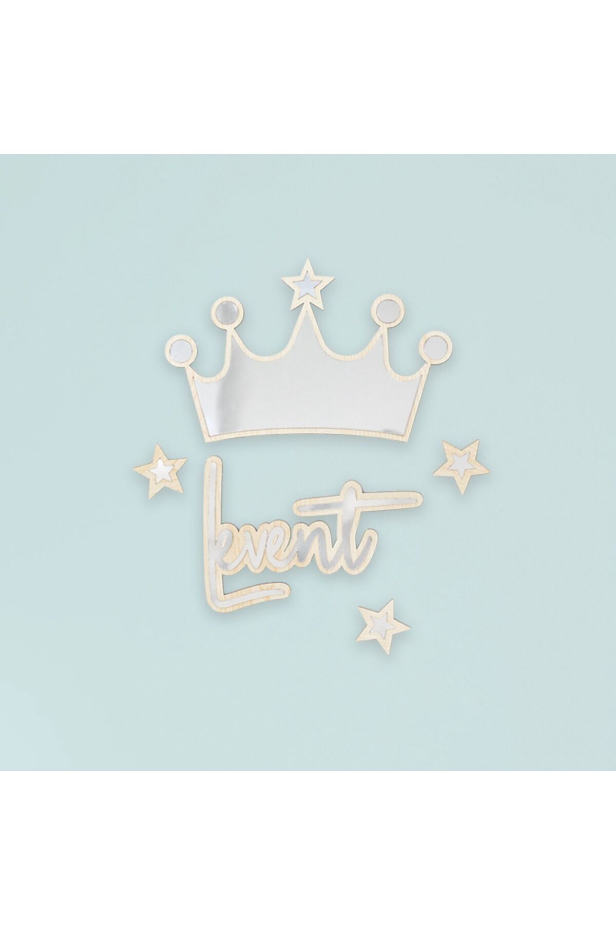 Kişiye Özel Ahşap Gümüş Pleksi Kral Tacı Duvar Süsü – 30x30 cm İsimli Bebek Çocuk Odası Dekoru