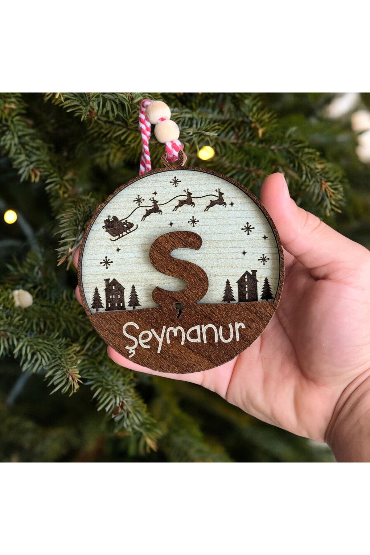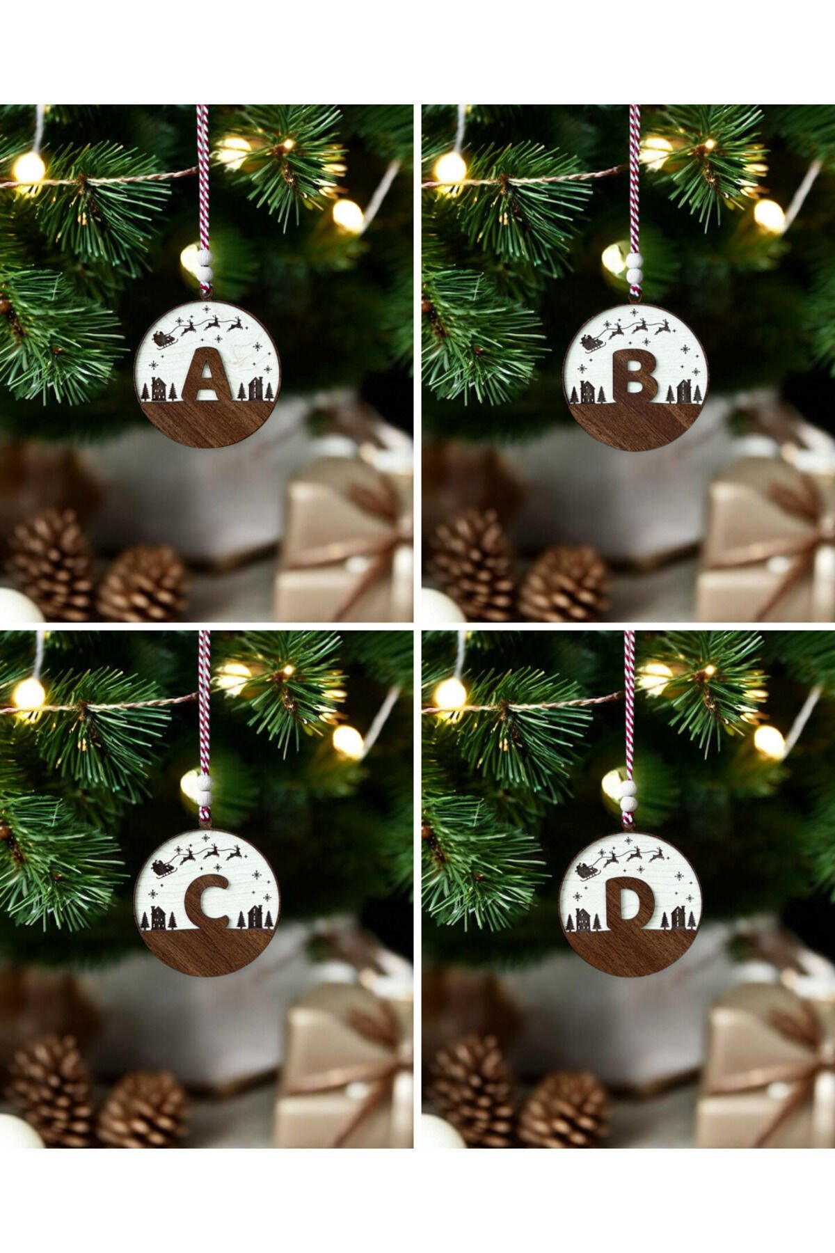 Kişiye Özel Ahşap Yılbaşı Süsü Harf ve İsim Yazılı Çam Ağacı Süsleri (A-Z) İskandinav tarzı