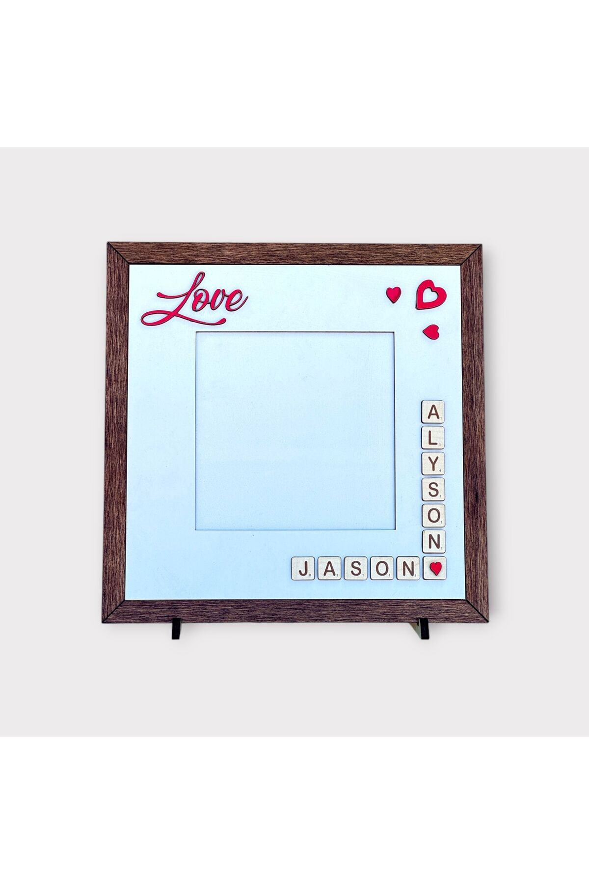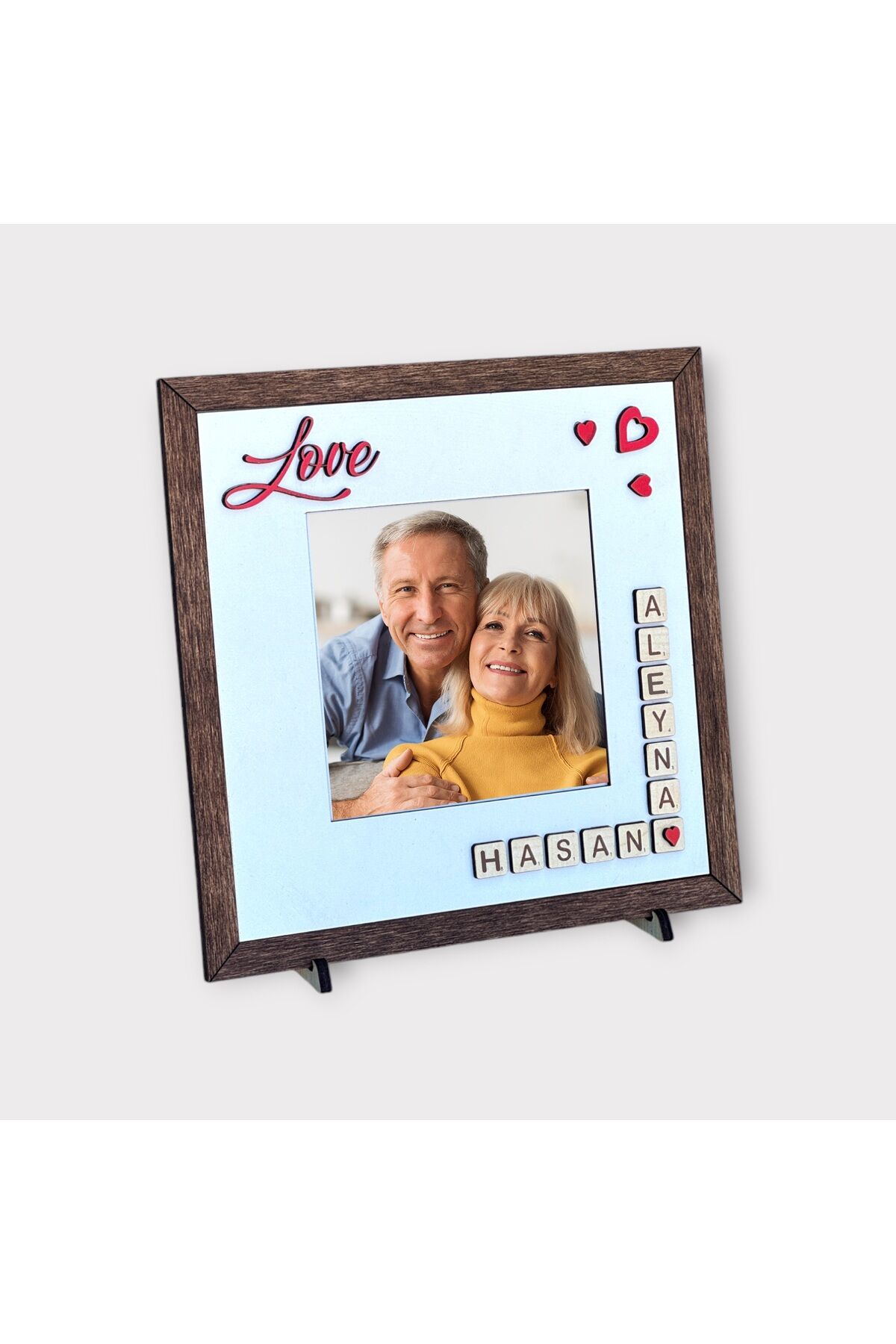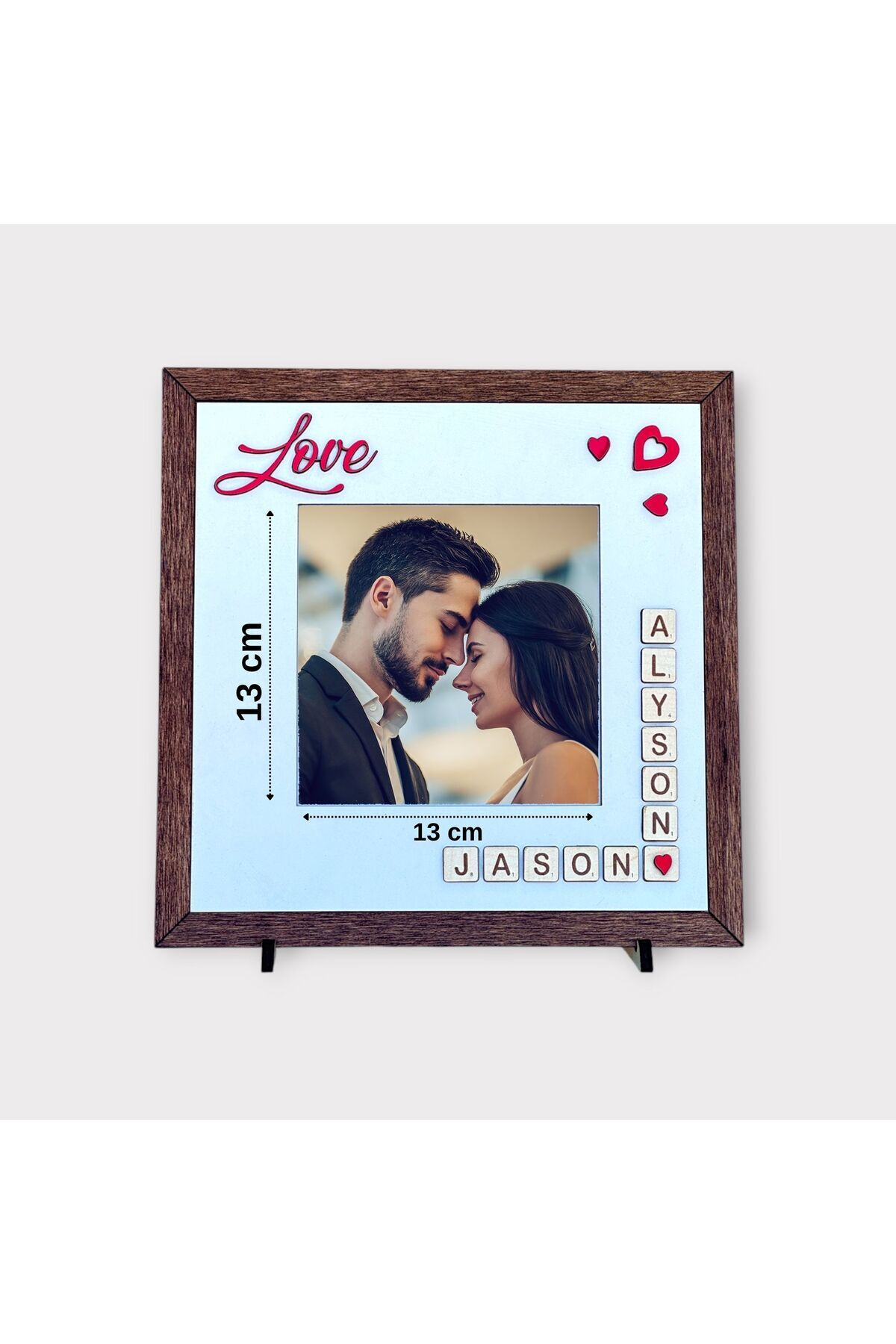 Kişiye Özel Aşk Temalı İsimli Ahşap Fotoğraf Çerçevesi – Sevgiliye Hediye 20x20 cm Kare
