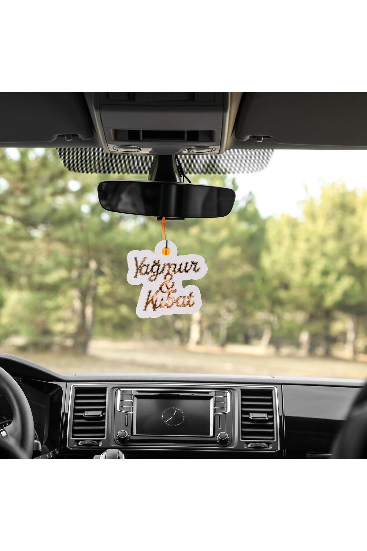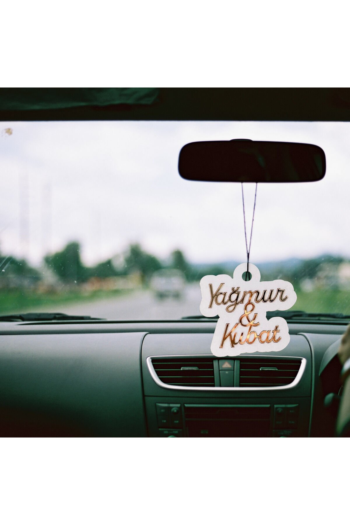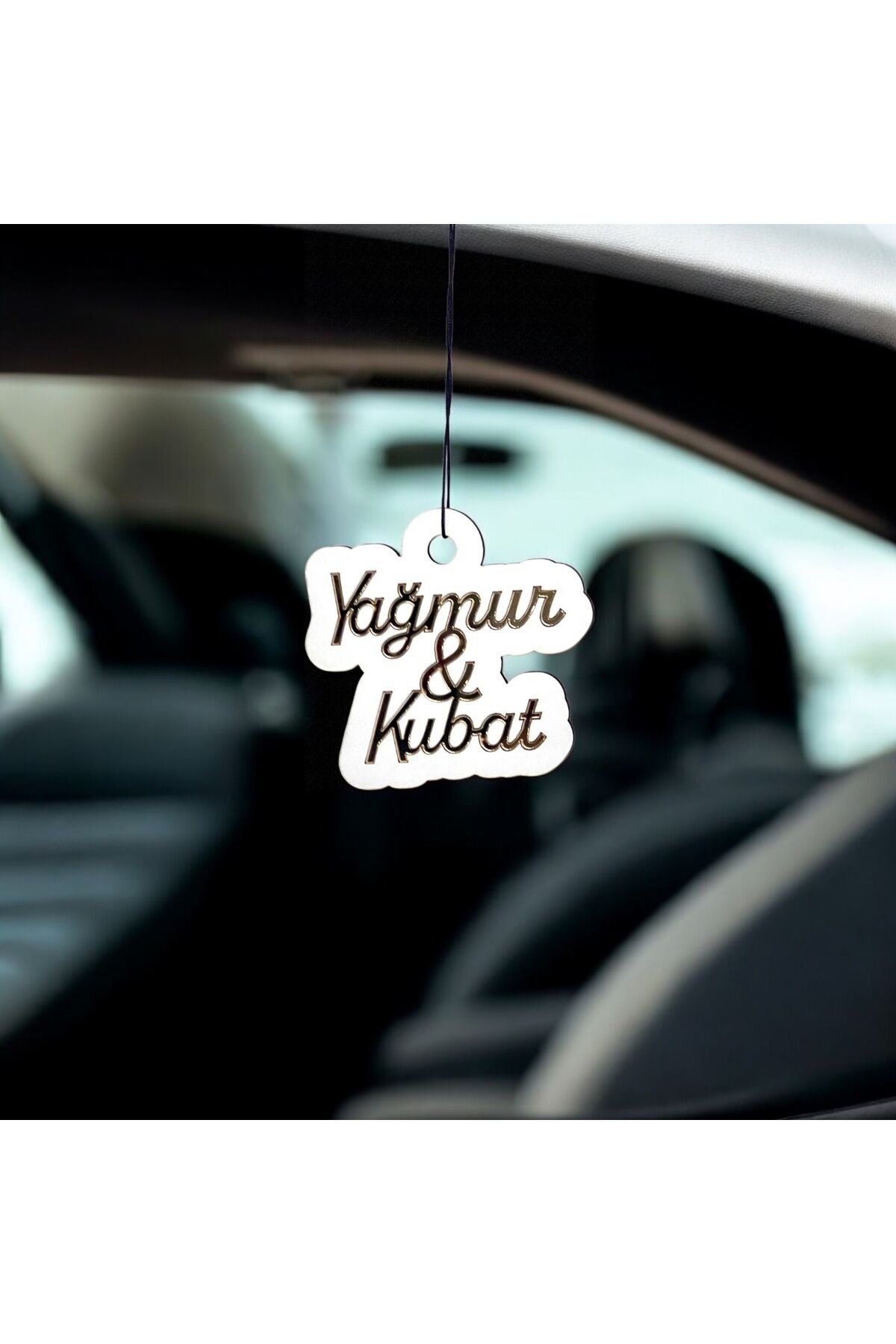 Kişiye Özel Gold Detaylı Dikiz Aynası Süsü – 2 Isimli Ahşap Araba Aksesuarı | Hediye Seçeneği