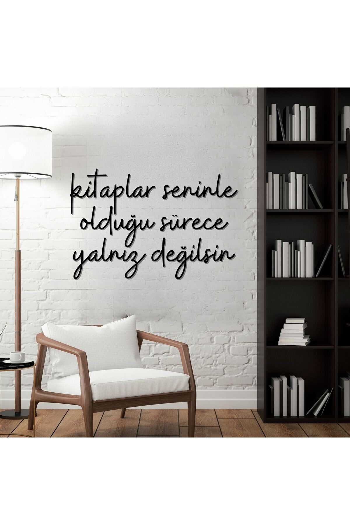 Kitaplar Seninle Olduğu Sürece Yalnız Değilsin Ahşap Duvar Yazısı - Siyah Kitap Sever Dekoru