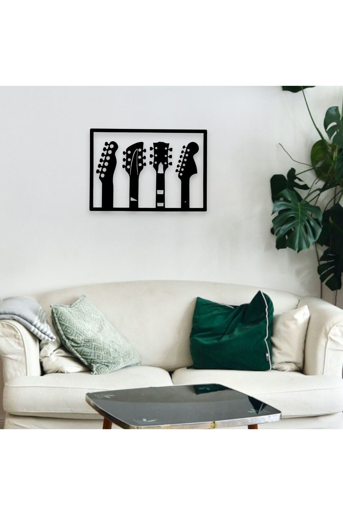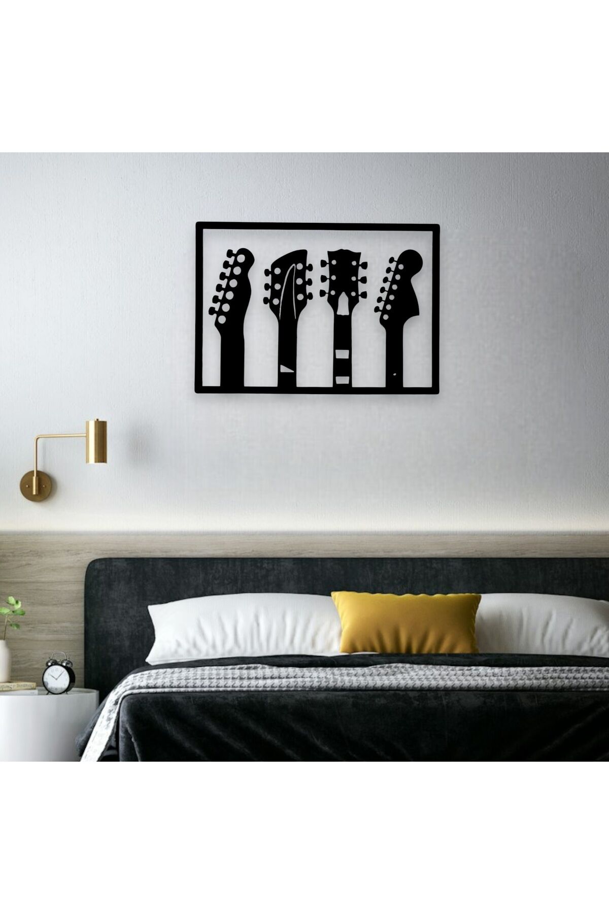 Mdf Gitar Dekoru 4 Gitar Saplı Ahşap Duvar Panosu, Gitar Temalı Mdf Duvar Dekoru Dekoratif