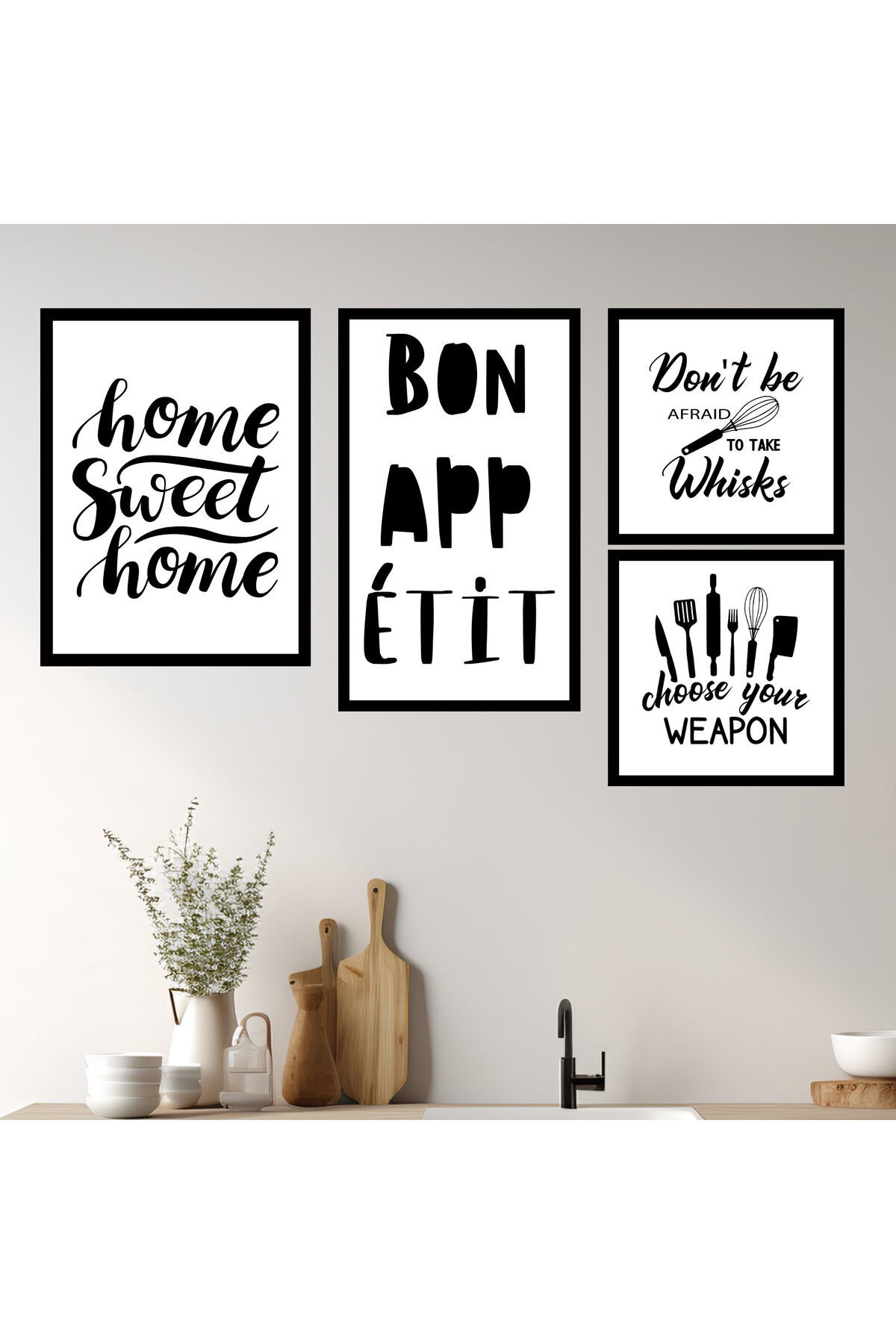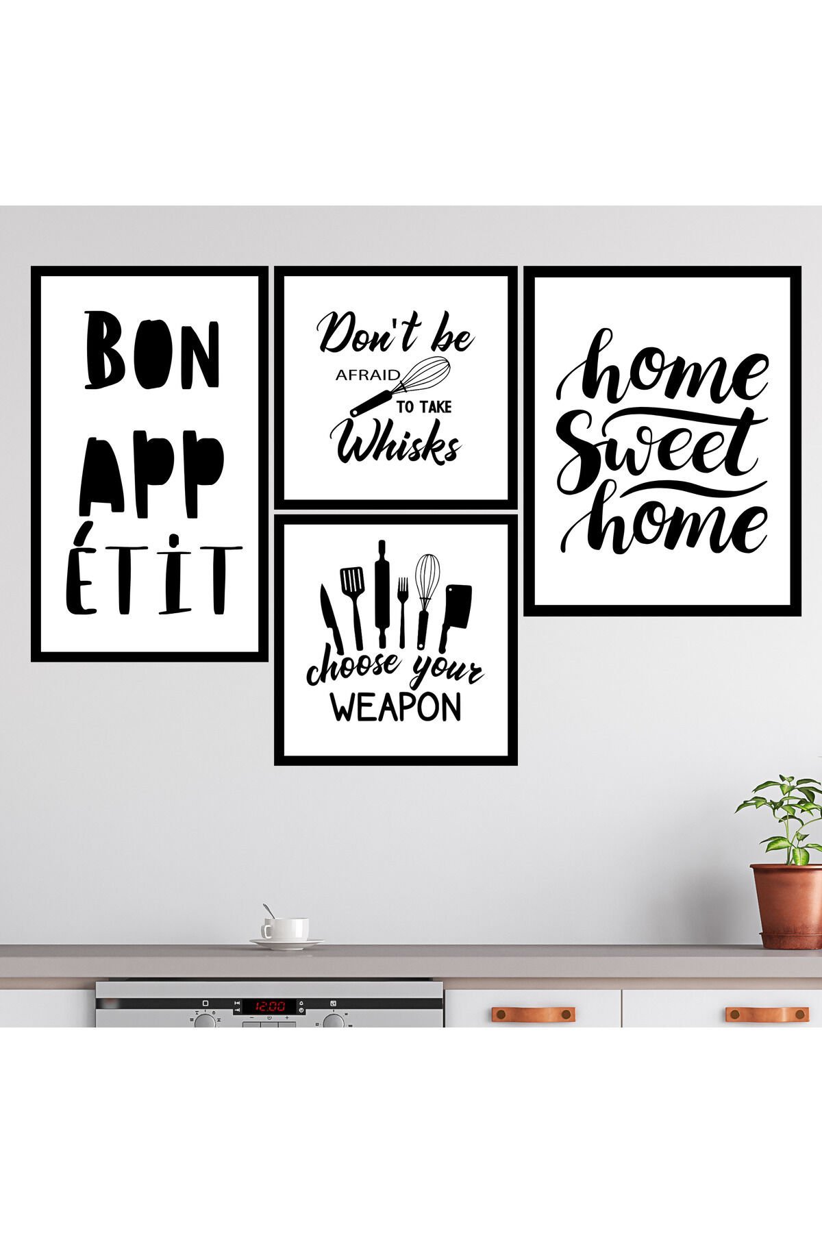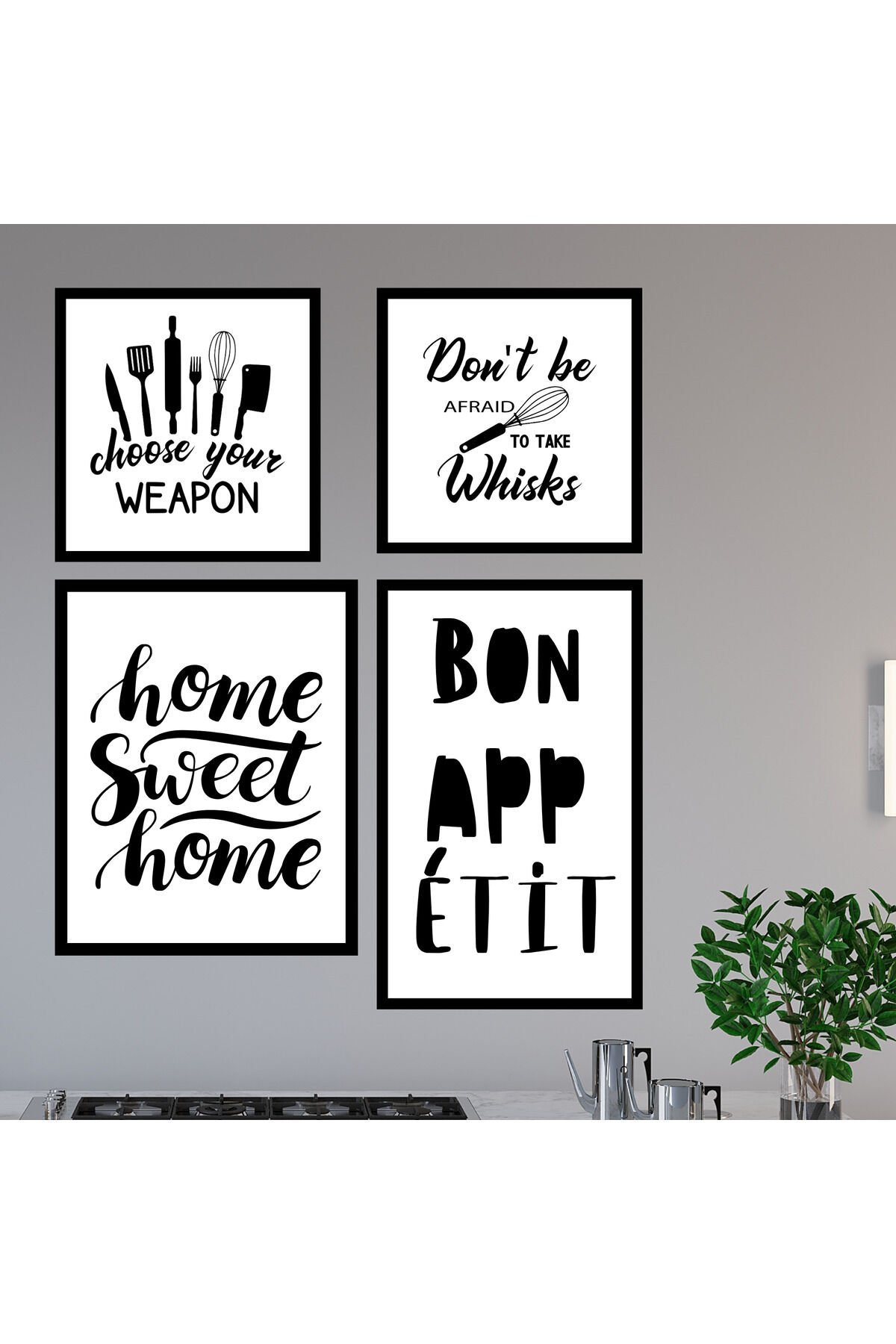 Mutfak temalı 4’lü MDF Duvar Tablo Seti – 20x20 20x25 20x30 Modern Yazı Dekor