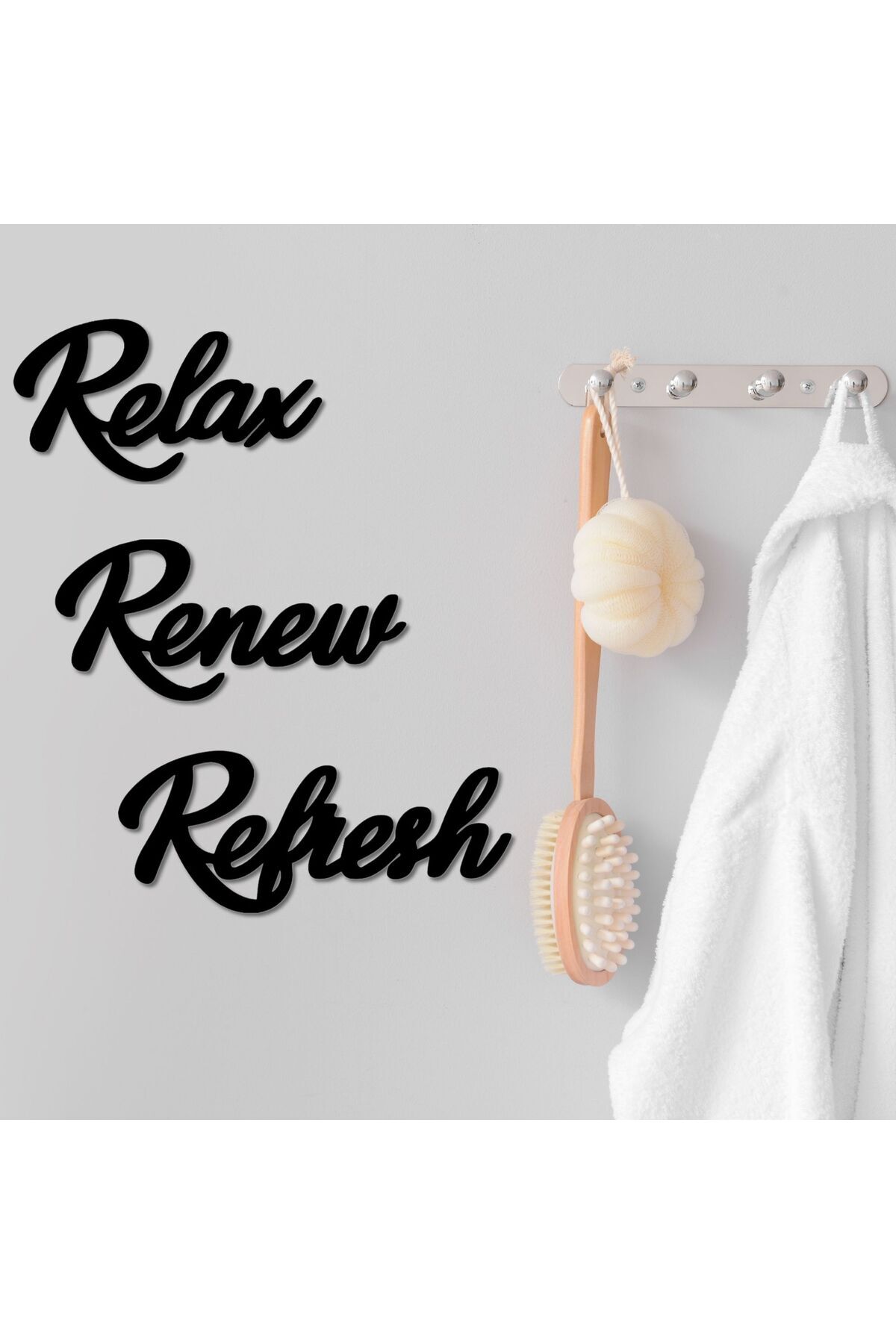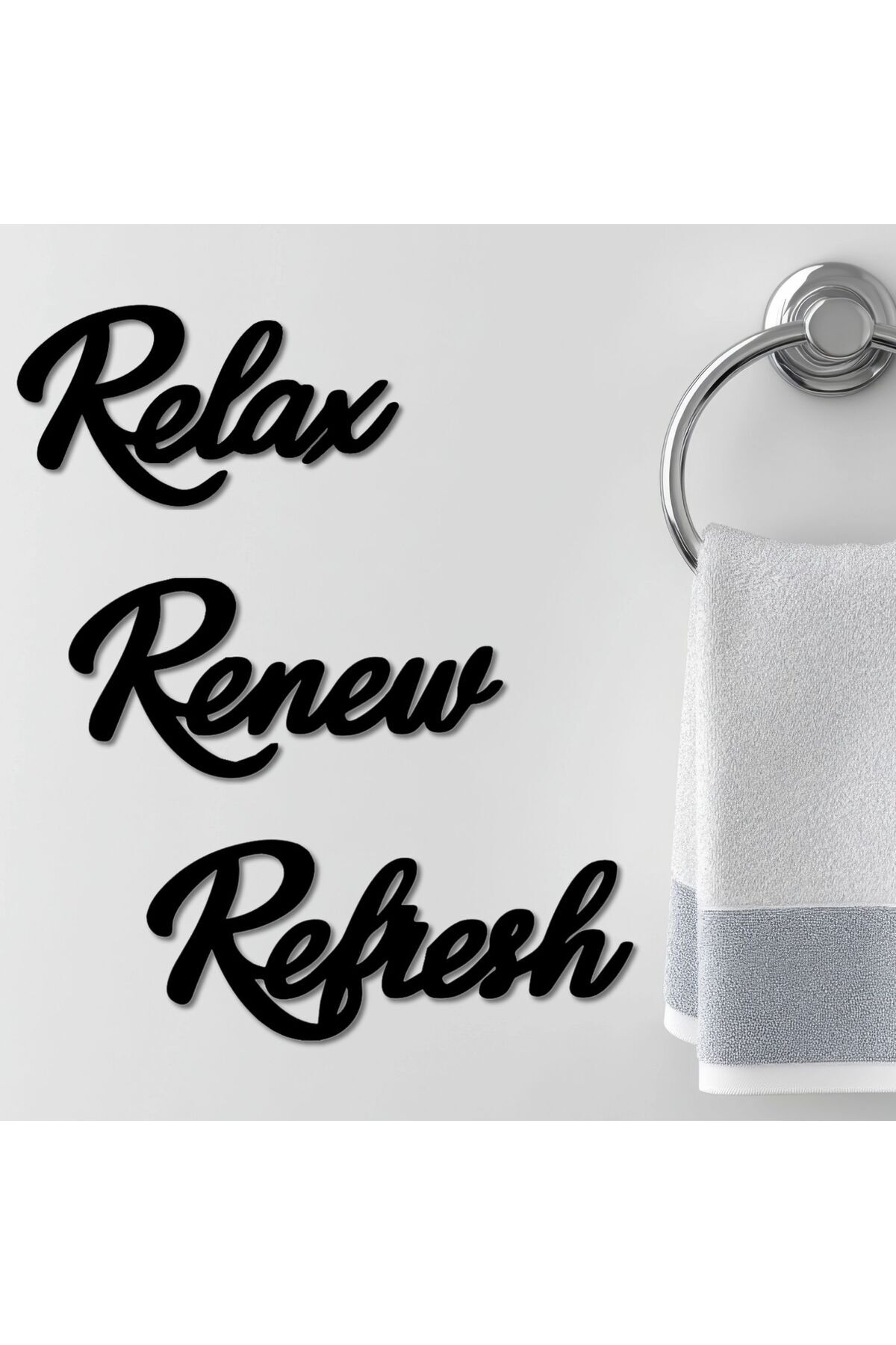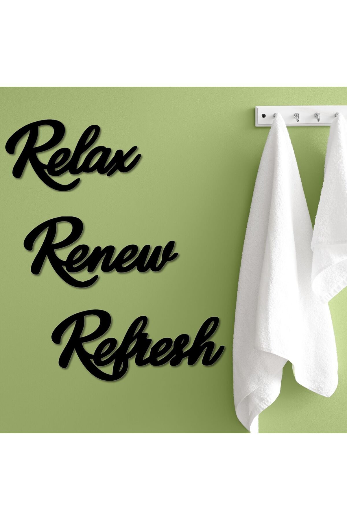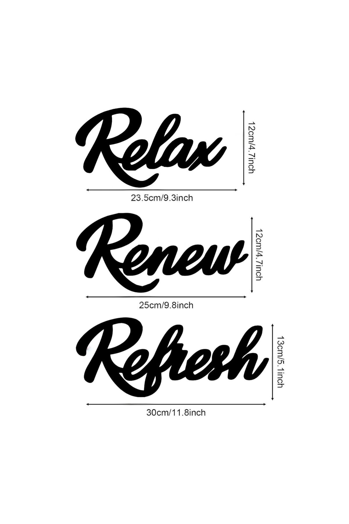 Relax Renew Refresh Siyah Ahşap Yazı Seti – Modern Duvar Dekoru, Motivasyonel Sözler