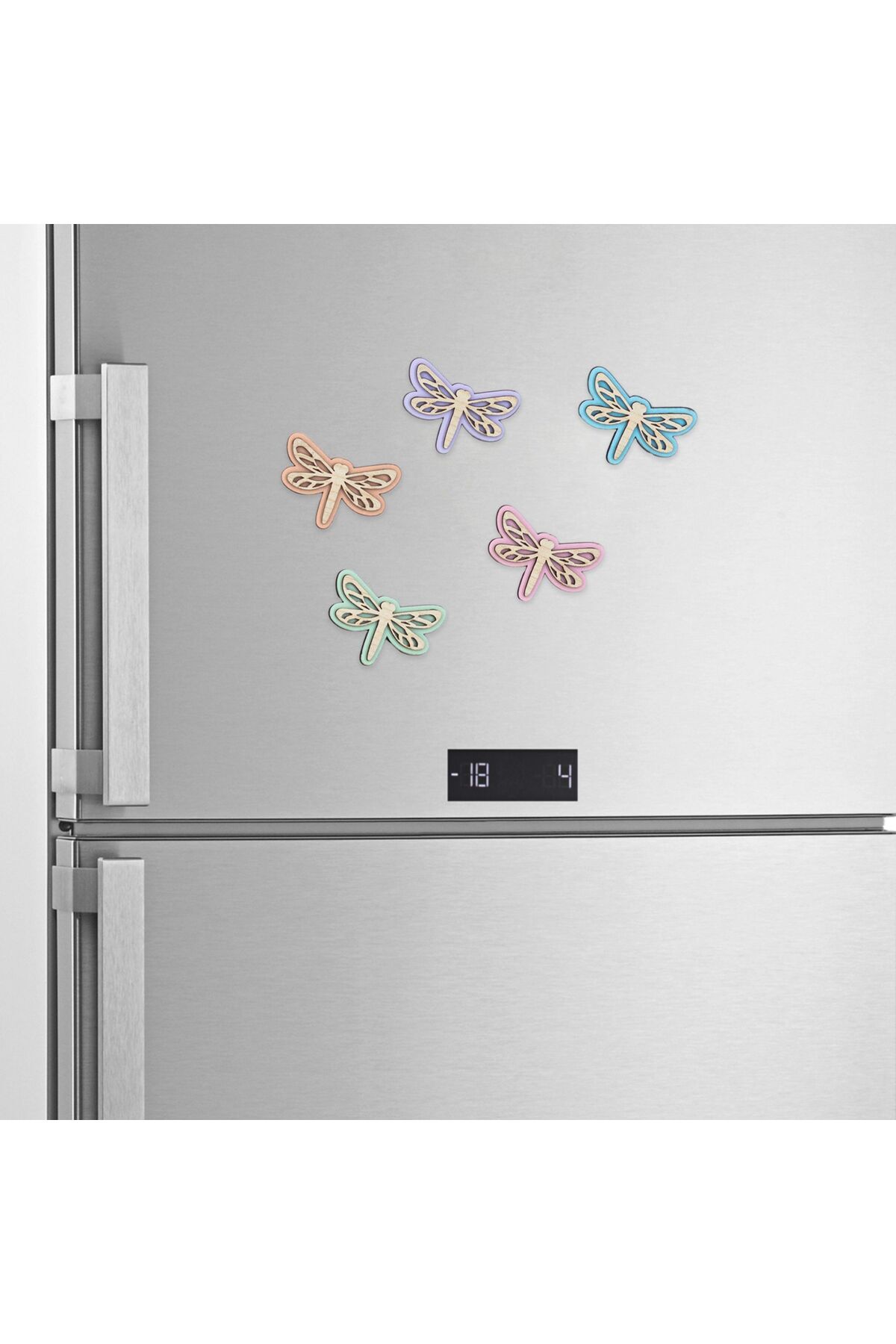 Renkli Ahşap Magnet Seti 5’li – Kelebek veya Yusufçuk Şeklinde Dekoratif Buzdolabı Süsü