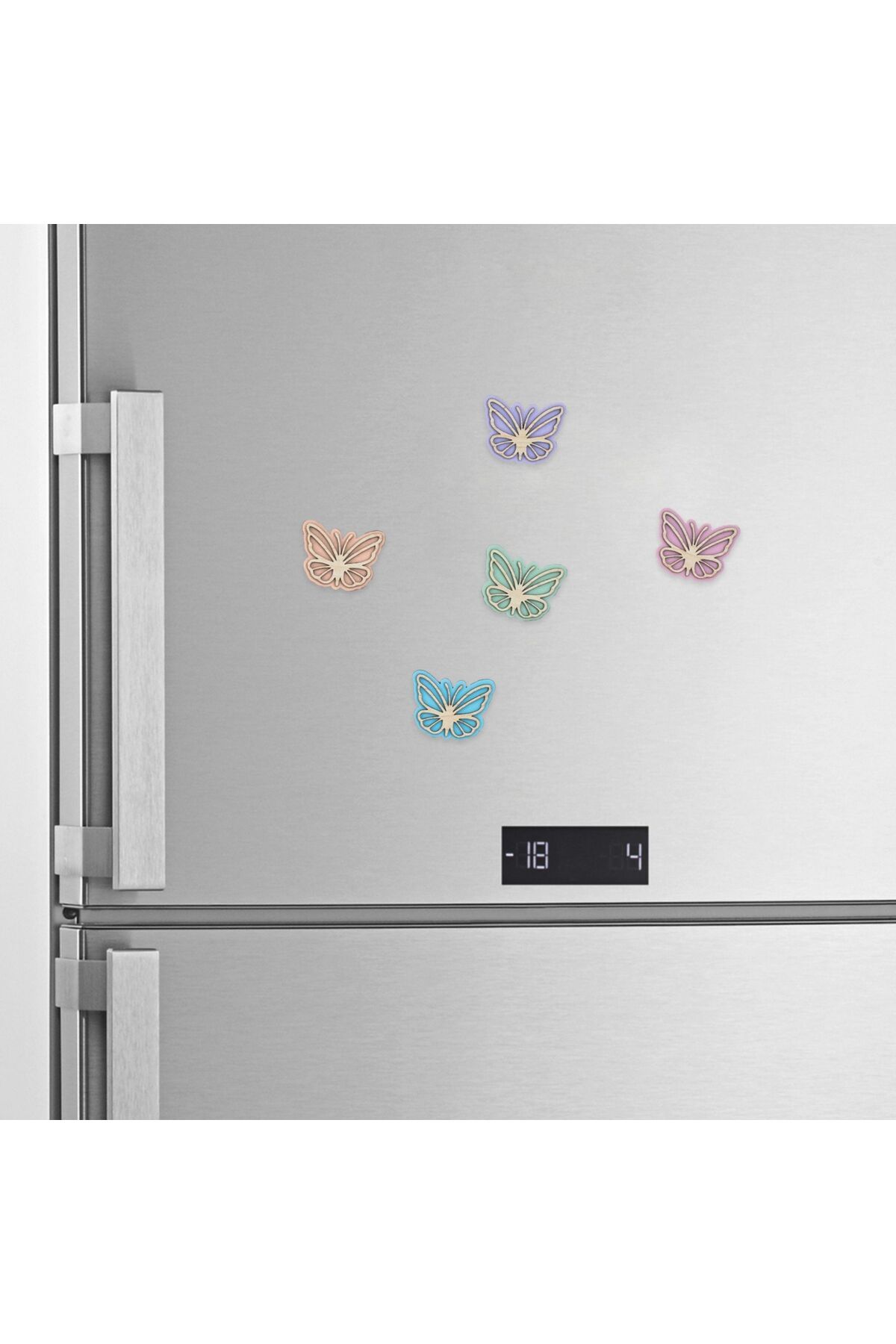 Renkli Ahşap Magnet Seti 5’li – Kelebek veya Yusufçuk Şeklinde Dekoratif Buzdolabı Süsü