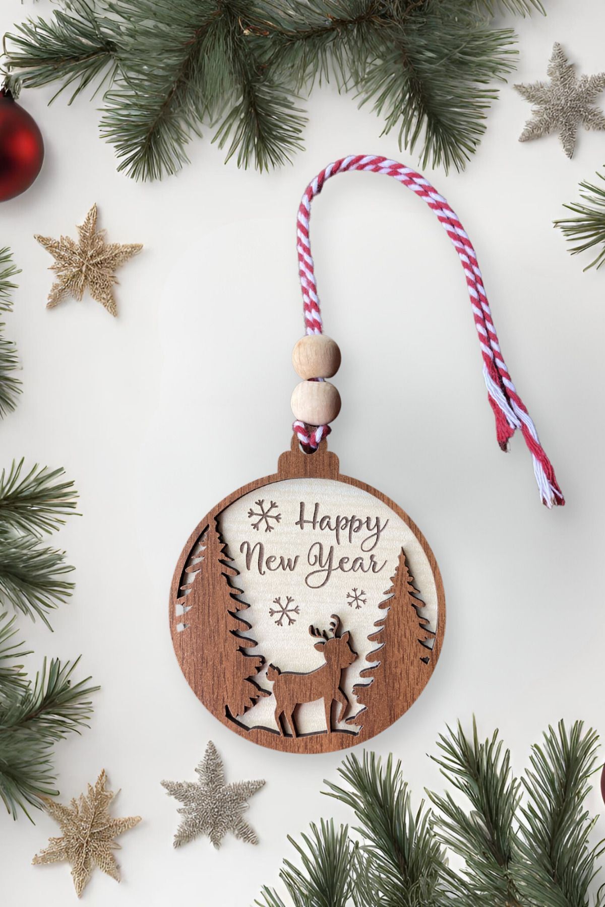 Yılbaşına Özel İskandinav Tarzı Yılbaşı Süsü: Sevimli Geyik ve İki Çam Ağacı Detaylı Çam Ağacı Süsü Yeni yılı kutlamak için evinize hoş bir dokunuş katmaya hazır mısınız? Bu sevimli ve özel tasarlanmış yılbaşı süsü, İskandinav tarzının sıcaklığını ve eğlencesini evinize getiriyor. ; 11 cm boyutlarındaki bu süs, iki çam ağacının ortasında yer alan sevimli geyik işlemesi ve "Happy New Year" yazısı kazıması ile dikkat çekiyor. ; Her set, süslemeyi kolaylaştırmak amacıyla 2 adet ahşap boncuk ve kırmızı beyaz ip içermektedir. ; Bu ürün, toplamda 9 farklı süsten oluşan geniş bir koleksiyonun bir parçasıdır. ; Diğer yılbaşı süslerini keşfetmek ve bu eşsiz süsü tamamlamak için mağazamızı ziyaret etmeyi unutmayın. ; Bu yılbaşı, evinize özel bir hava katmak ve sevdiklerinizi sevindirmek için bu sevimli yılbaşı süsünü tercih edebilirsiniz. ; Hippodeco olarak, özel anlarınızı renklendirmek için buradayız. ; Özel günler hediye aile ofis sevgililer günü doğum günü isme özel hediyelik;