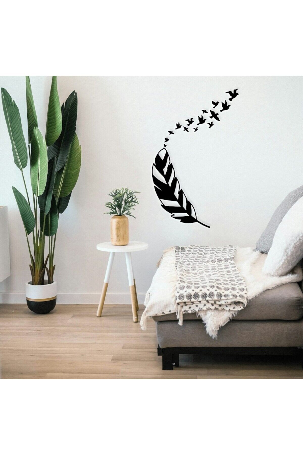 Tüy ve Kuşlar Duvar Dekoru, Ev ve Ofis İçin Dekoratif Doğa Temalı Aksesuar, Yeni Ev Hediyesi