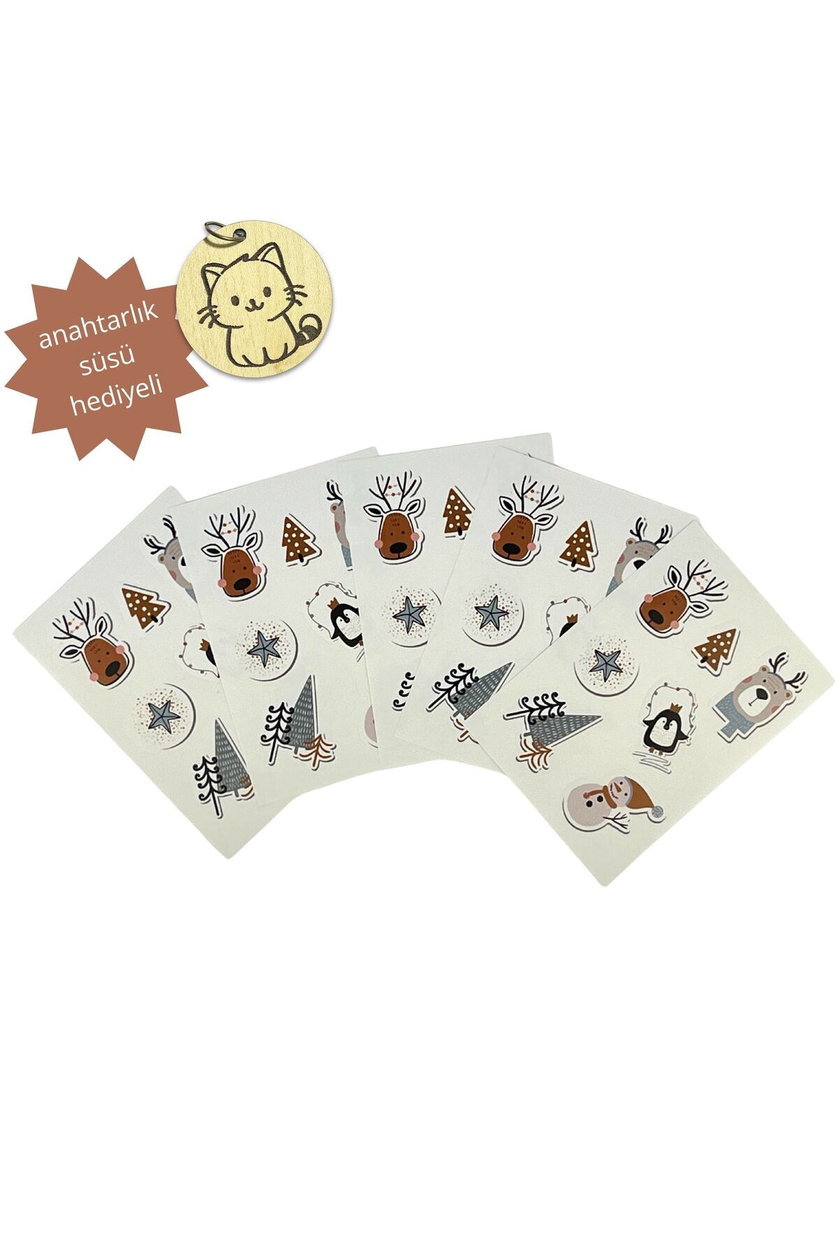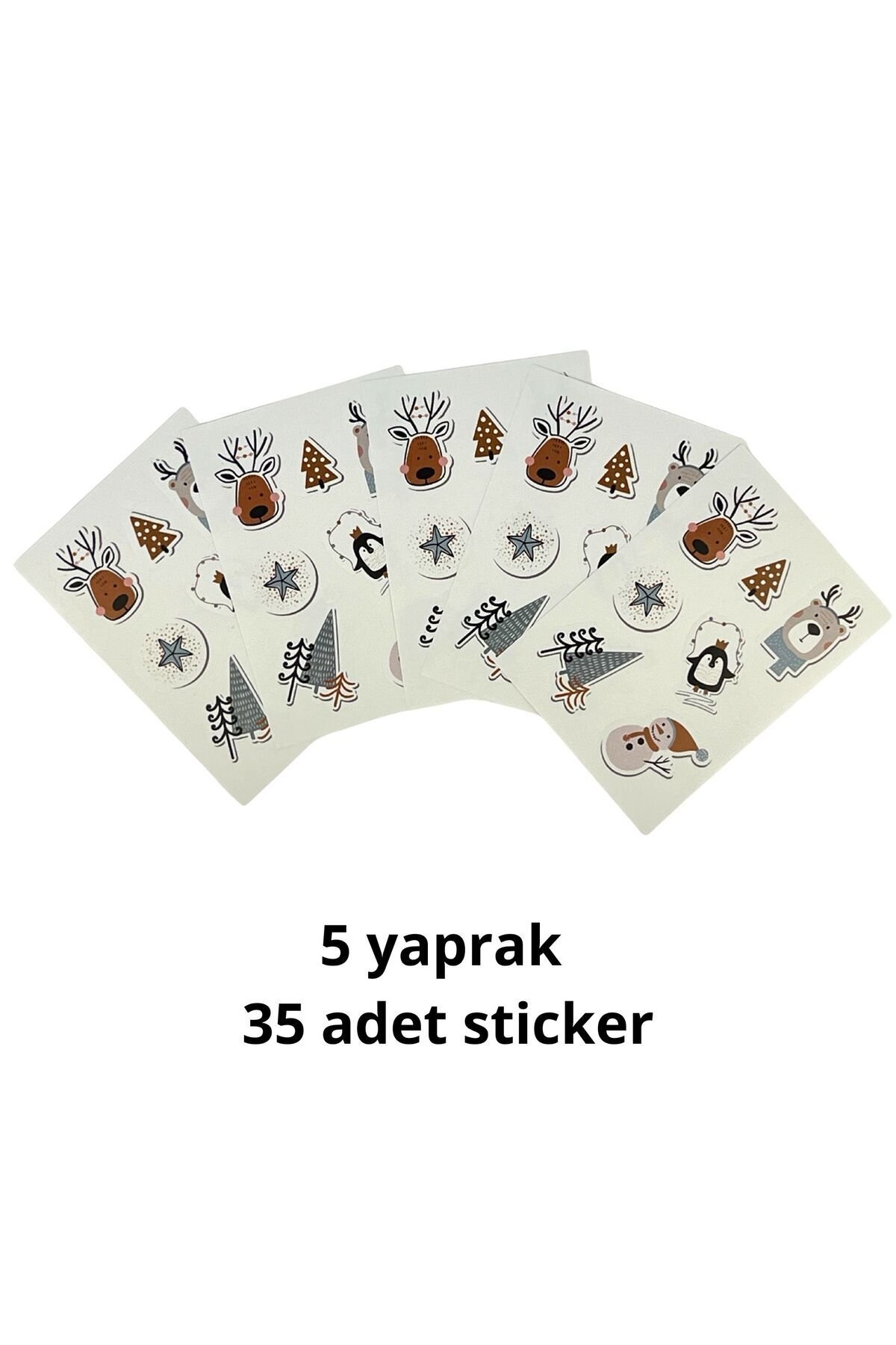 Yılbaşı Sticker Seti – Kardan Adam, Geyik, Çam Ağacı, Penguen ve Yeni Yıl Süsleri